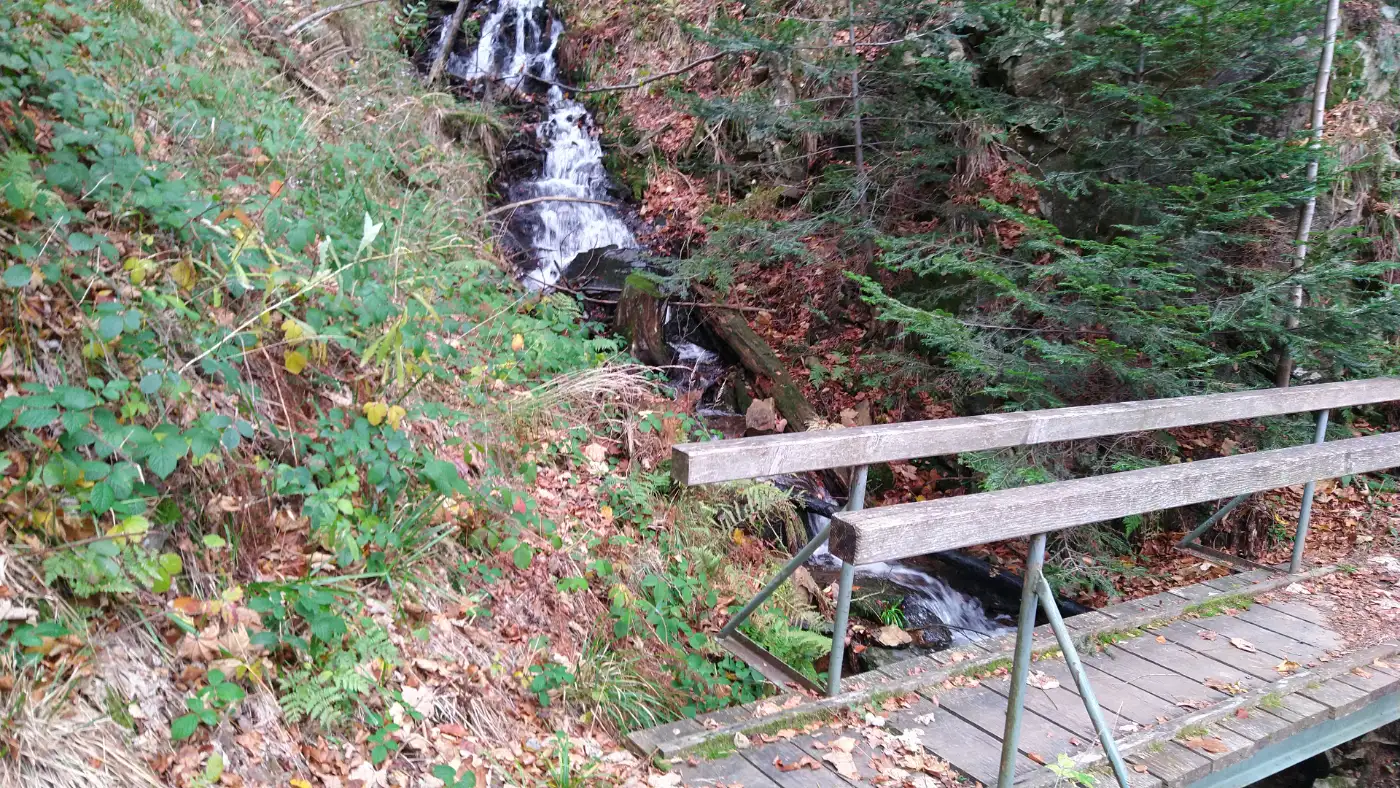 Die Ravennaschlucht: Der letzte Abschnitt unserer Wanderung führt uns an der sagenumwobenen Ravennaschlucht vorbei, einer der eindrucksvollsten Naturlandschaften im Schwarzwald. Zwischen steilen Felswänden rauscht die Ravenna durch das enge Tal, über dem sich das Viadukt der Höllentalbahn spannt. Wir folgen jedoch nicht dem Flusslauf der Schlucht, sondern dem Wegweiser nach Hinterzarten. Der Pfad steigt ins offene Hochtal und führt am Gasthaus Engel vorbei. Schließlich erreichen wir Hinterzarten mit seinem Bahnhof — das Ziel einer Wanderung, die zu den schönsten im Südschwarzwald zählt.Diese Tour wurde am 29.10.2025 von einer realen Person erwandert, fotografiert und beschrieben. Die GPS-Daten der Fotos wurden vor Ort erfasst und dienten zur exakten Rekonstruktion der Route.