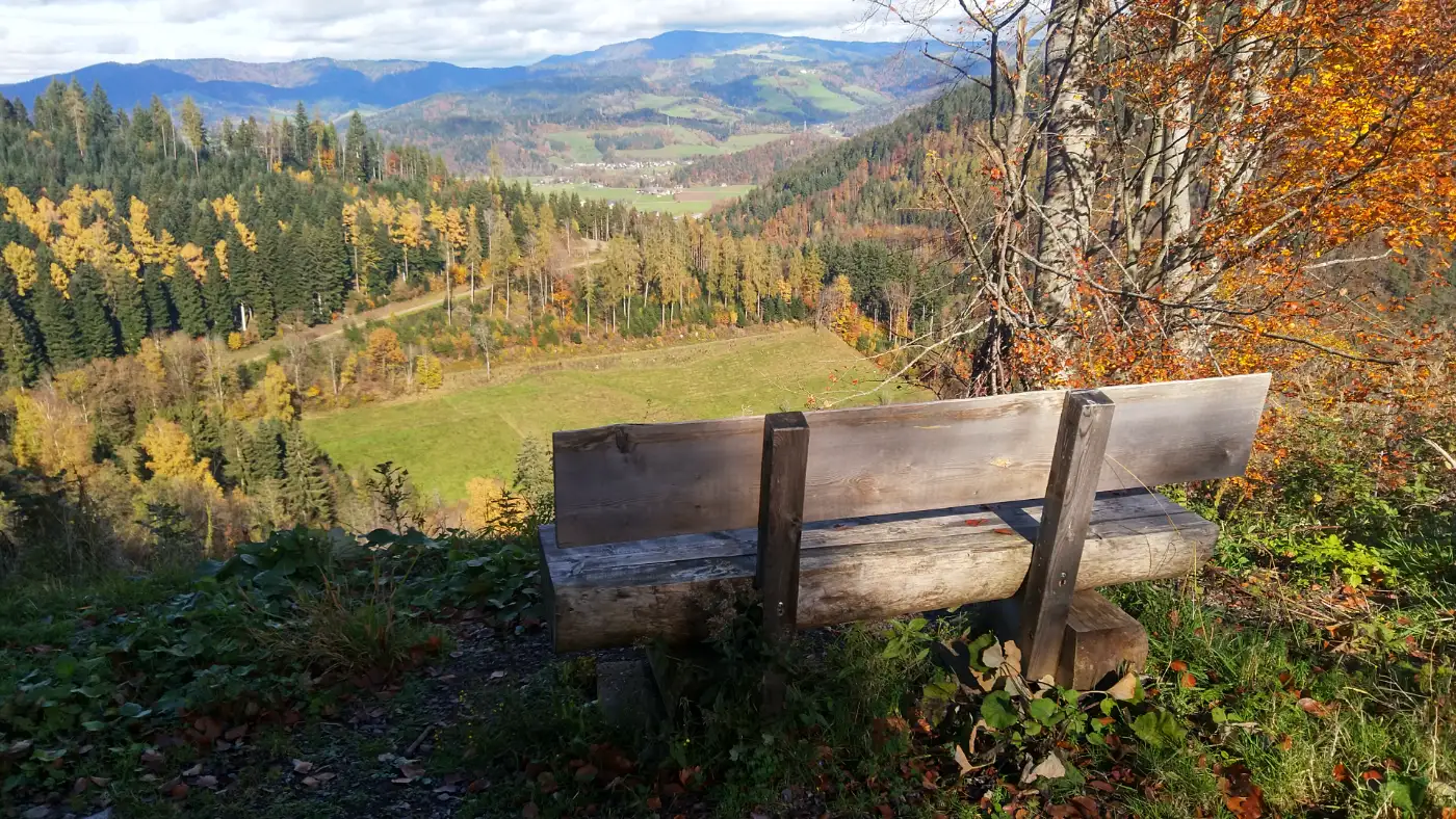 Unser Weg bringt uns auf den Hinterwaldkopf, eine markante Erhebung im Dreisamtal mit unvergleichlicher Aussicht. Auf seiner offenen Gipfelkuppe befindet sich ein Ringwall-Steinkreis und eine Gedenkstätte der Freiburger Turnerschaft für die im Ersten und Zweiten Weltkrieg Gefallenen. Während unter uns das Dreisamtal liegt, weitet sich der Blick in alle Himmelsrichtungen und reicht bis zum Feldberg und über das Schwarzwaldplateau. Wir verweilen oben, spüren den Wind auf der Bergkuppe und lassen die Weite wirken - denn dieser Ort belohnt den kräftezehrenden Aufstieg mit einem Panorama, das schlicht zu den schönsten im Schwarzwald zählt.Weiler Alpersbach