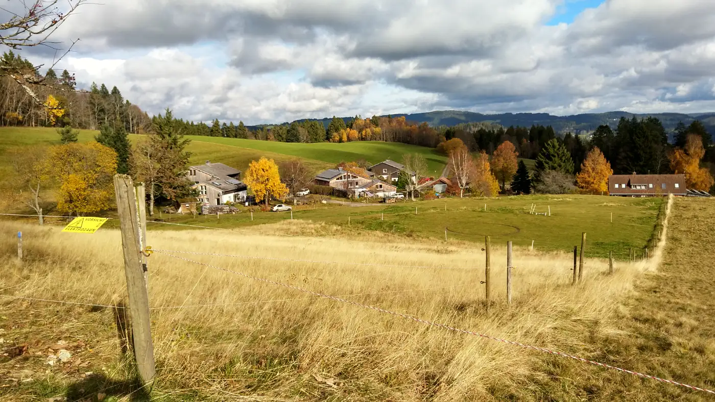 Von der Höfener Hütte aus eröffnet sich ein atemberaubendes Panorama über das Dreisamtal und bis hinüber zu den Vogesen. Der Blick schweift über dunkle Tannenhänge, helle Wiesen und kleine Dörfer, die wie Inseln in der grünen Landschaft liegen. Nach der Rast folgen wir dem Pfad weiter über freies Gelände, während sich die Aussicht Schritt für Schritt verändert. In der Ferne zeichnen sich die Höhenzüge des Schauinslands ab - ein Anblick, der die Weite und Schönheit des Südschwarzwalds eindrucksvoll widerspiegelt.Hinterwaldkopfgipfel - 1200 m ü. NHN