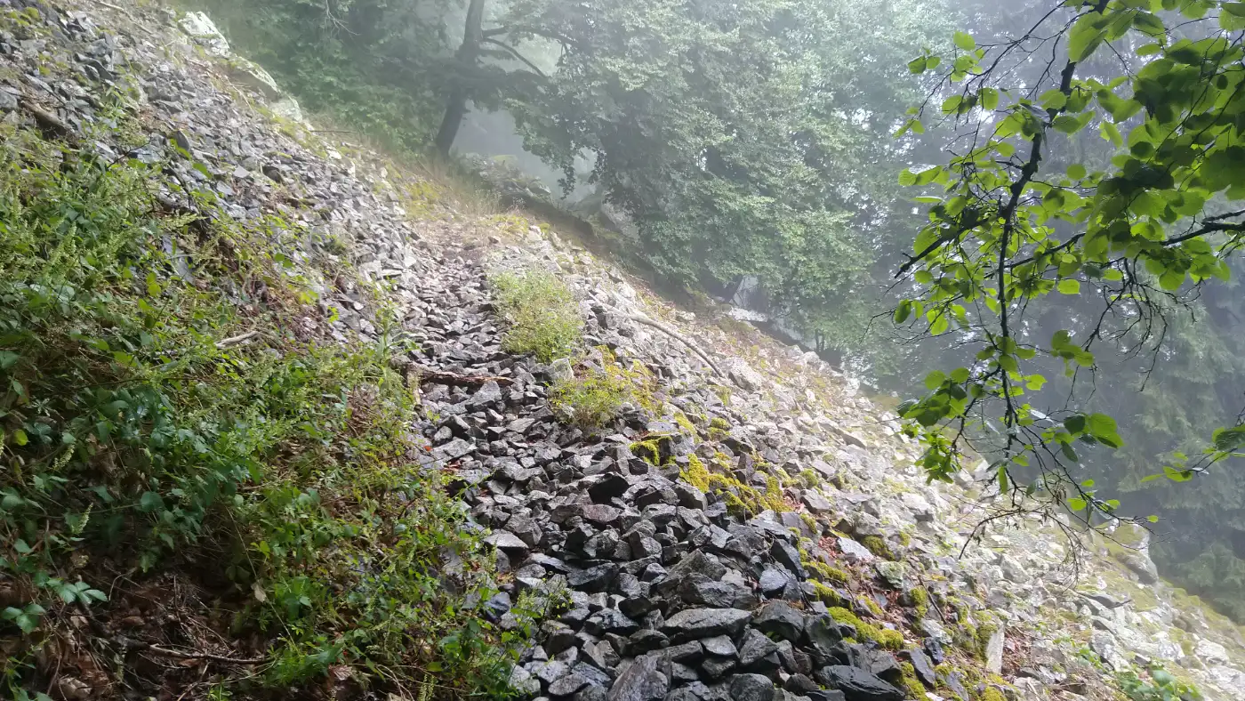 Kurz vor der Ravennasäge verlassen wir die Schlucht und folgen dem Wegweiser, der uns hinauf zum Piketfelsen leitet. Der Piketfelsen beeindruckt mit seinem markanten Felsvorsprung und bietet atemberaubende Ausblicke über die umliegende Landschaft. Der schmale, oft rutschige und wenig begangene Wanderweg hinab zur St. Oswald Kapelle erfordert Trittsicherheit und Schwindelfreiheit, belohnt jedoch mit seiner geheimen Ruhe und unvergleichlichen Atmosphäre.St. Oswald Kapelle