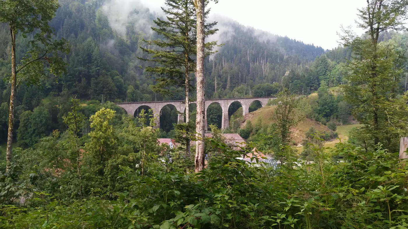 Der Rückweg führt uns auf der gegenüberliegenden Seite der B31 entlang, stets mit Blick auf das beeindruckende Ravennaviadukt. Anschließend wandern wir wieder den Löffeltalweg hinauf, dem wir bereits am Anfang der Tour in entgegengesetzter Richtung gefolgt sind. Von dort geht es gemütlich zurück bis zum Bahnhof in Hinterzarten, wo unsere Wanderung endet und die Heimreise beginnt.Diese Tour wurde am 03.07.2025 von einer realen Person erwandert, fotografiert und beschrieben. Die GPS-Daten der Fotos wurden vor Ort erfasst und dienten zur exakten Rekonstruktion der Route.