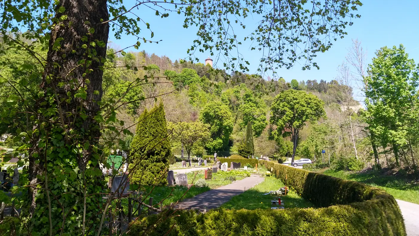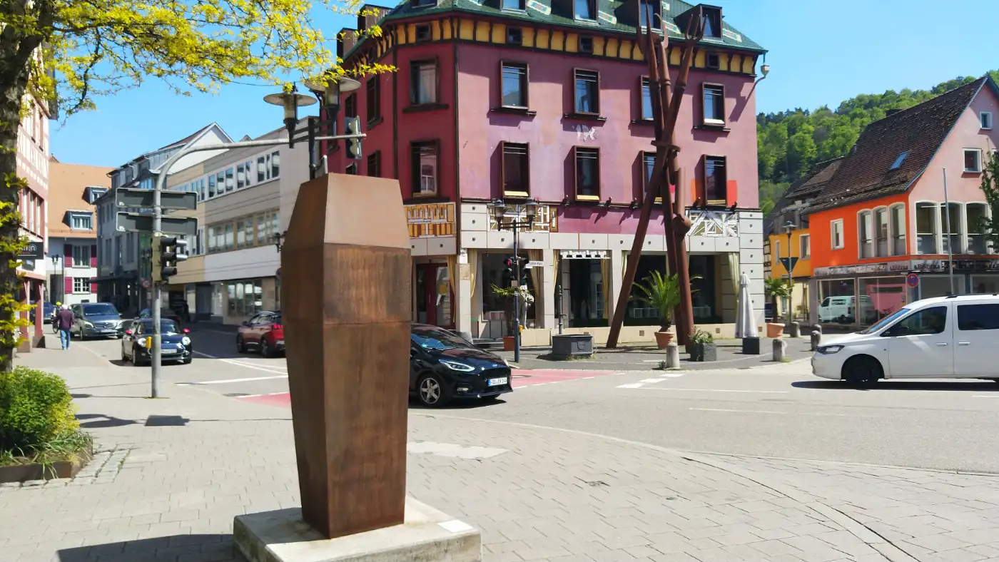 Diese Wanderung beginnt am Bahnhof in Horb, den wir geradeaus in Richtung Neckar verlassen. Nach der Überquerung des Flusses tauchen wir ein in die untere Stadt mit ihrem charmanten Altstadtflair. An der Neckarstraße angekommen, biegen wir nach rechts ab und passieren den historischen Hackbrunnen. Weiter geht es in Richtung Lotzerhaus - leicht zu erkennen an der markanten Skulptur eines überdimensionalen Bestecks, das als kunstvolle Anspielung auf seine gastronomische Geschichte vor dem Gebäude platziert ist.Weiter Richtung Friedhof