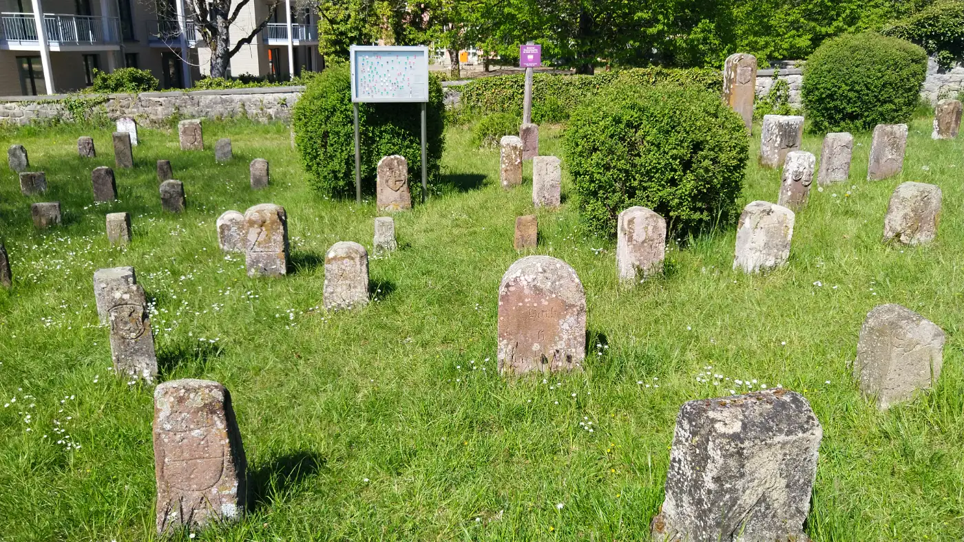 Denn hier befindet sich der steinerne Geschichtsgarten: Eine Sammlung historischer Grenzsteine, die früher die Gemarkungen und Besitzverhältnisse in der Region markierten. Jeder dieser behauenen Steine erzählt ein Stück lokaler Geschichte, eingefasst in moosbewachsenes Grün - ein stiller, symbolischer Ort der Erinnerung, der den Übergang zwischen Vergangenheit und Gegenwart spürbar macht.Mittelalterliche Stadtmauer und Turmanlage