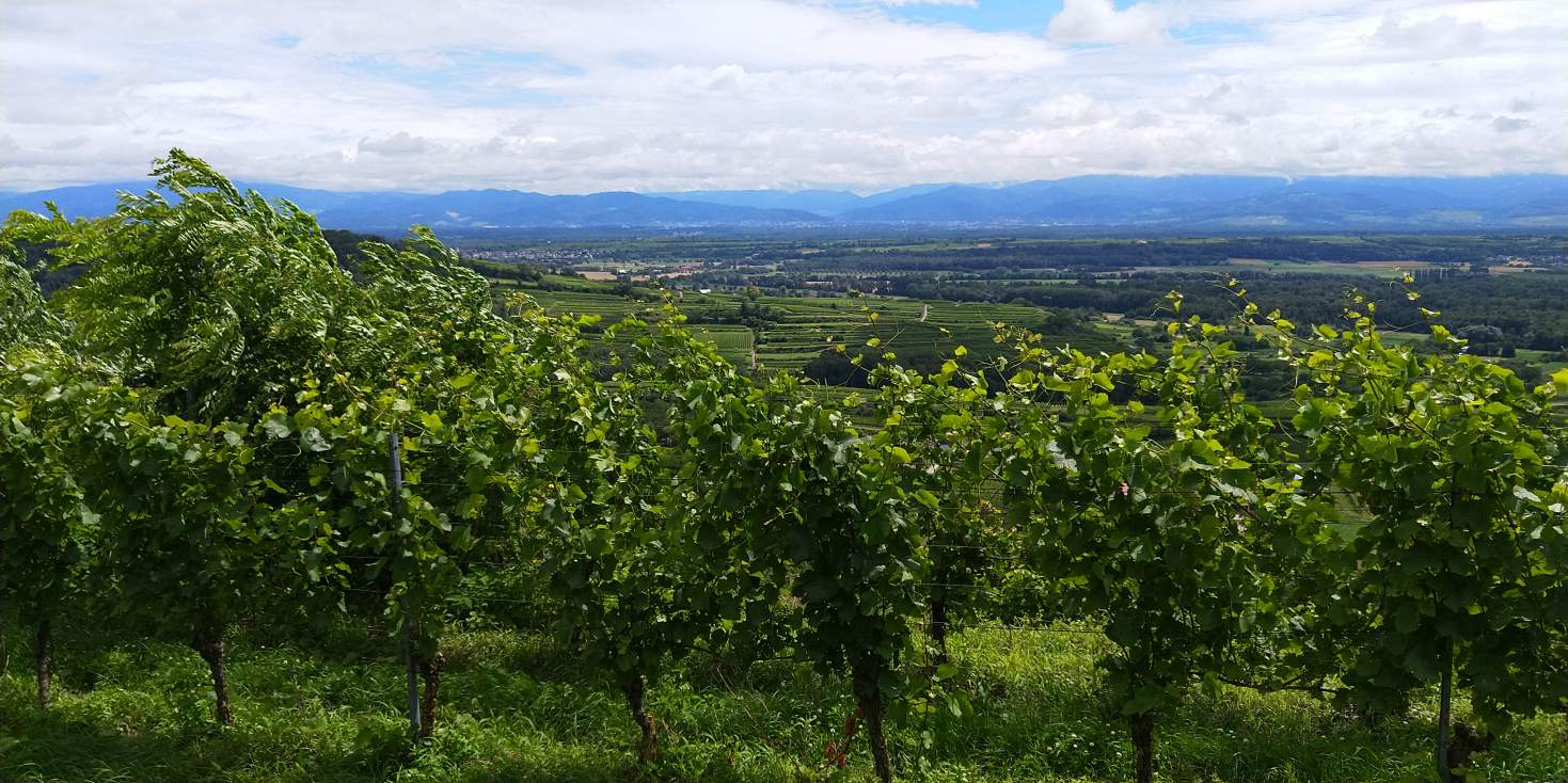 Der Weg steigt stetig an, führt durch schattige Waldstücke und lichtdurchflutete Rebhänge. Immer wieder eröffnen sich spektakuläre Blicke auf den Kaiserstuhl, die Oberrheinebene, den Schwarzwald und - bei klarem Wetter - auf die Vogesen in Frankreich. Besonders im Frühjahr und Herbst ist die Fernsicht beeindruckend.Aussichtsturm Totenkopf