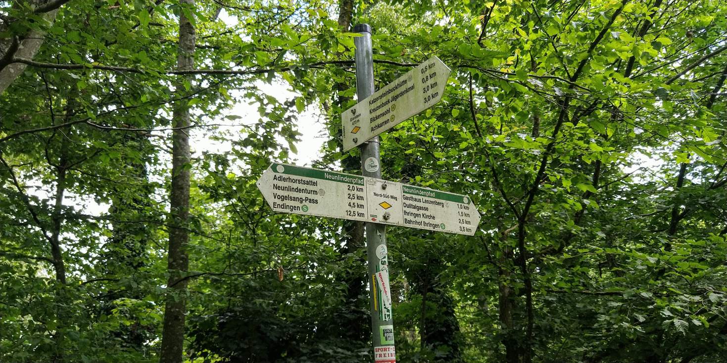 Nach etwa zwei Stunden erreichen wir das Plateau des Totenkopfs - mit 557 m die höchste Erhebung im Kaiserstuhl. Hier steht der markante Neunlindenturm, ein 14 Meter hoher Aussichtsturm, der im Jahr 1900 vom Schwarzwaldverein Freiburg erbaut wurde. Nach dem Aufstieg auf den Turm erwartet uns ein 360°-Panorama: Vom Feldberg im Osten bis zum Straßburger Münster im Westen - ein echtes Highlight der Tour.Ein Berg mit düsterer Geschichte