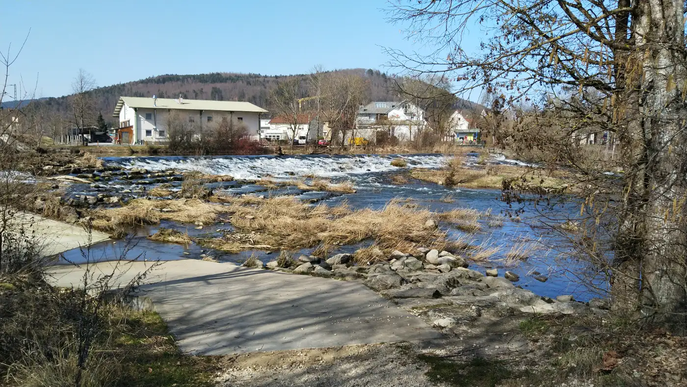 Panoramareiche Wanderung zu Wasserfällen, Kratersee und mystischer Flussversickerung. Naturpfade, Aussichten und Karstphänomene prägen diese Tour. Wir beginnen unsere Rundwanderung am Bahnhof von Immendingen und folgen zunächst der Schwarzwaldstraße bis zum Kreisverkehr. Dort biegen wir rechts ab und halten uns in Richtung Donau. Schon nach kurzer Zeit erreichen wir die Immendinger Wasserfälle. Hier stürzt das Wasser über mehrere flache, aber breit gestufte Felsbänke hinab und bildet ein lebendiges Naturschauspiel. Wir bleiben einen Moment stehen und beobachten, wie die Donau in mehreren Kaskaden über das Gestein gleitet. Besonders nach regenreichen Tagen zeigt sich dieser Ort von seiner eindrucksvollsten Seite. Das stetige Rauschen des Wassers begleitet uns noch eine Weile, bevor wir unseren Weg flussabwärts fortsetzen.Hattingen Bahnhof