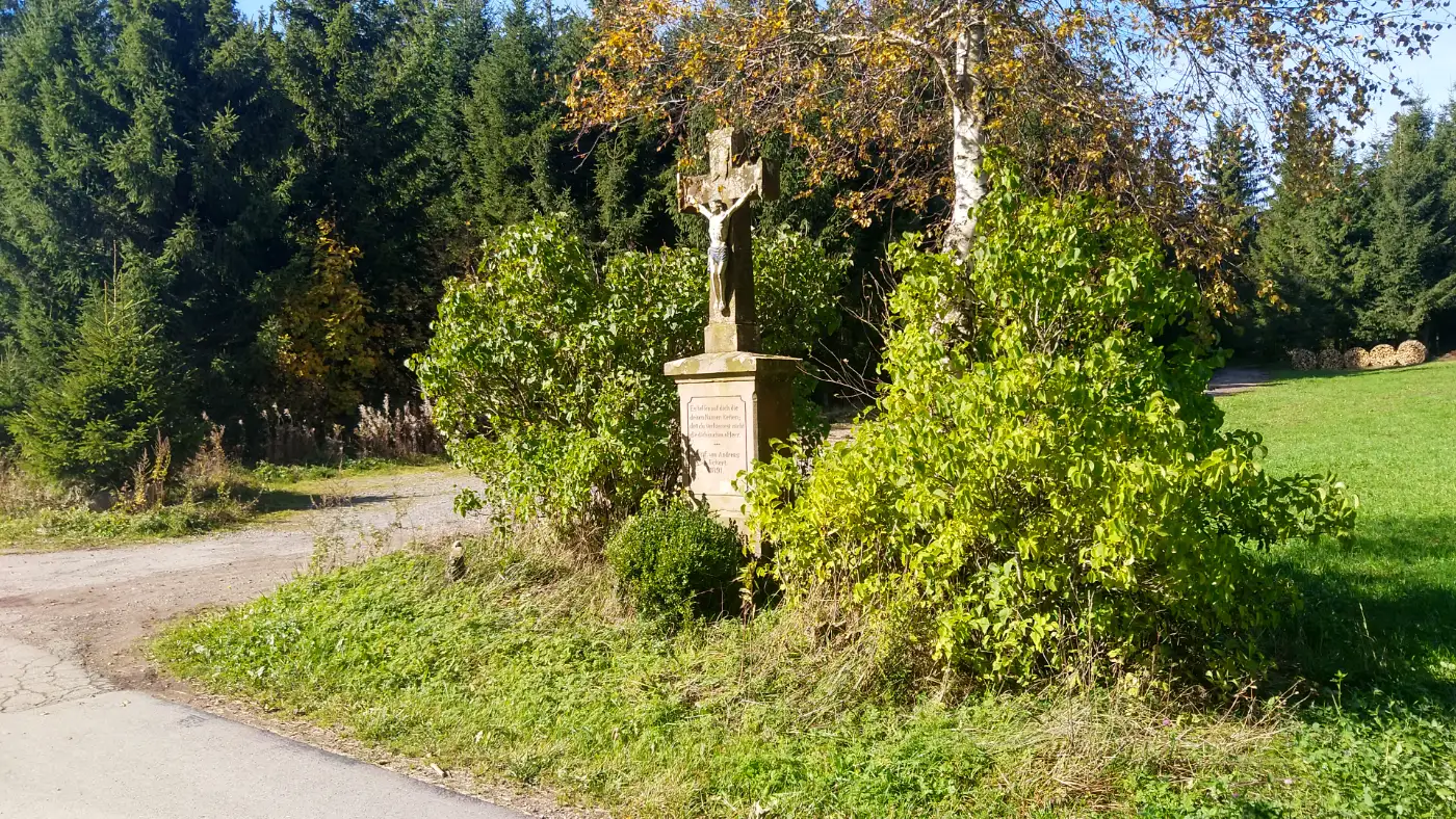 Nachdem wir das Jostal hinter uns gelassen haben, führt uns die letzte Etappe schließlich nach Neustadt, wo wir an der schlichten, von alten Bäumen umrahmten Friedhofskapelle vorbeikommen. Die Kapelle auf dem "Alten Friedhof" von Neustadt wurde im Jahr 1882 erbaut und steht heute unter Denkmalschutz. Von hier ist es nur noch ein kurzer Weg bis zum Bahnhof Neustadt, wo unsere Wanderung ihren Abschluss findet. Hinter uns liegen Wälder, Wiesen und stille Orte, die von der Seele des Schwarzwaldes erzählen. Wir blicken zurück auf unseren Weg von der Kalten Herberge bis hierher - eine Tour, die Natur, Geschichte und Ruhe auf besondere Weise miteinander verbindet.Diese Tour wurde am 10.10.2025 von einer realen Person erwandert, fotografiert und beschrieben. Die GPS-Daten der Fotos wurden vor Ort erfasst und dienten zur exakten Rekonstruktion der Route.