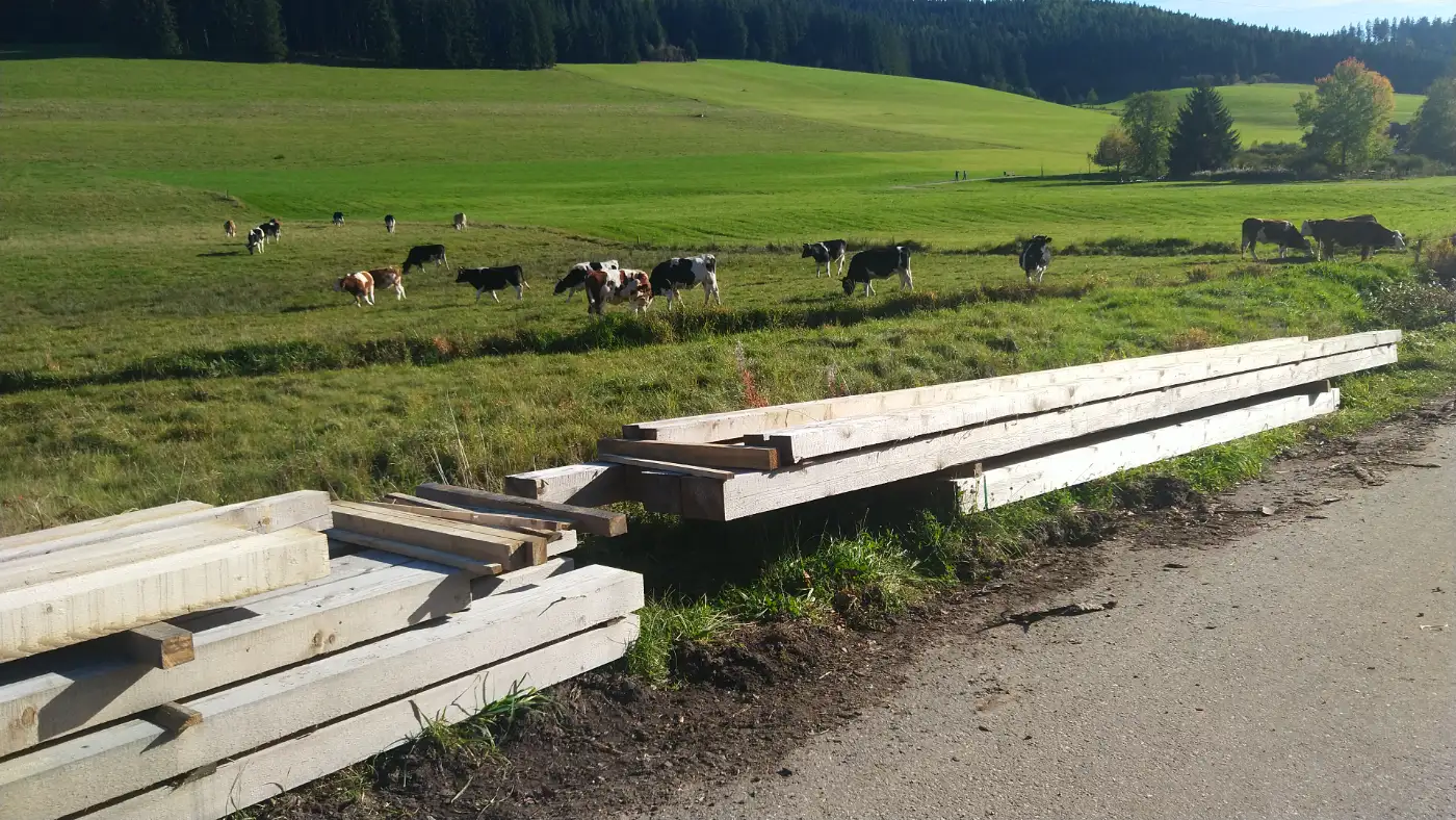 Wir starten unsere Wanderung direkt im kleinen Weiler Kaltenherberg, der sich mit seinen alten Schwarzwaldhöfen sanft an die Hänge schmiegt. Umgeben von weiten Wiesen und dunklen Waldrändern liegt über dem Ort eine ruhige, fast zeitlose Stimmung. Das Läuten der Kuhglocken hallt über die Hügel, während wir der Obertalstraße folgen, die sich allmählich bergauf windet. Immer wieder öffnen sich kleine Lichtungen und geben den Blick frei auf die Höhen rund um Hochberg - ein sanfter, aber stetiger Anstieg, der uns tiefer in die Landschaft des Hochschwarzwalds führt.Gasthaus Engel bei Hochberg