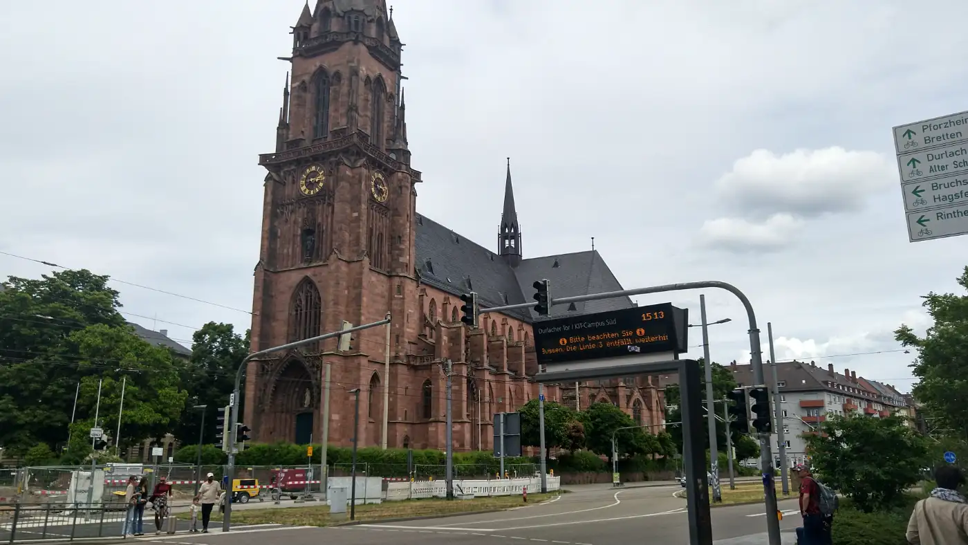 Unweit der Karlsruher Pyramide biegen wir rechts in die Kaiserstraße ab - die zentrale Einkaufsstraße der Stadt, die uns in Richtung Osten führt. Auf unserem Weg passieren wir den Kronenplatz, einen belebten Platz mit moderner Architektur, Cafés und Straßenbahnknotenpunkt, bevor wir das Durlacher Tor erreichen.Karlsruher Instituts für Technologie (KIT)