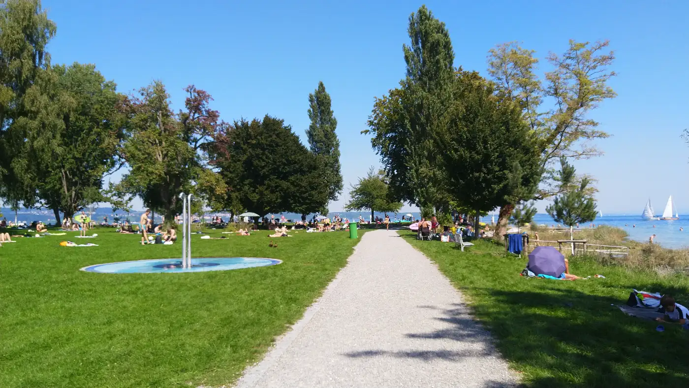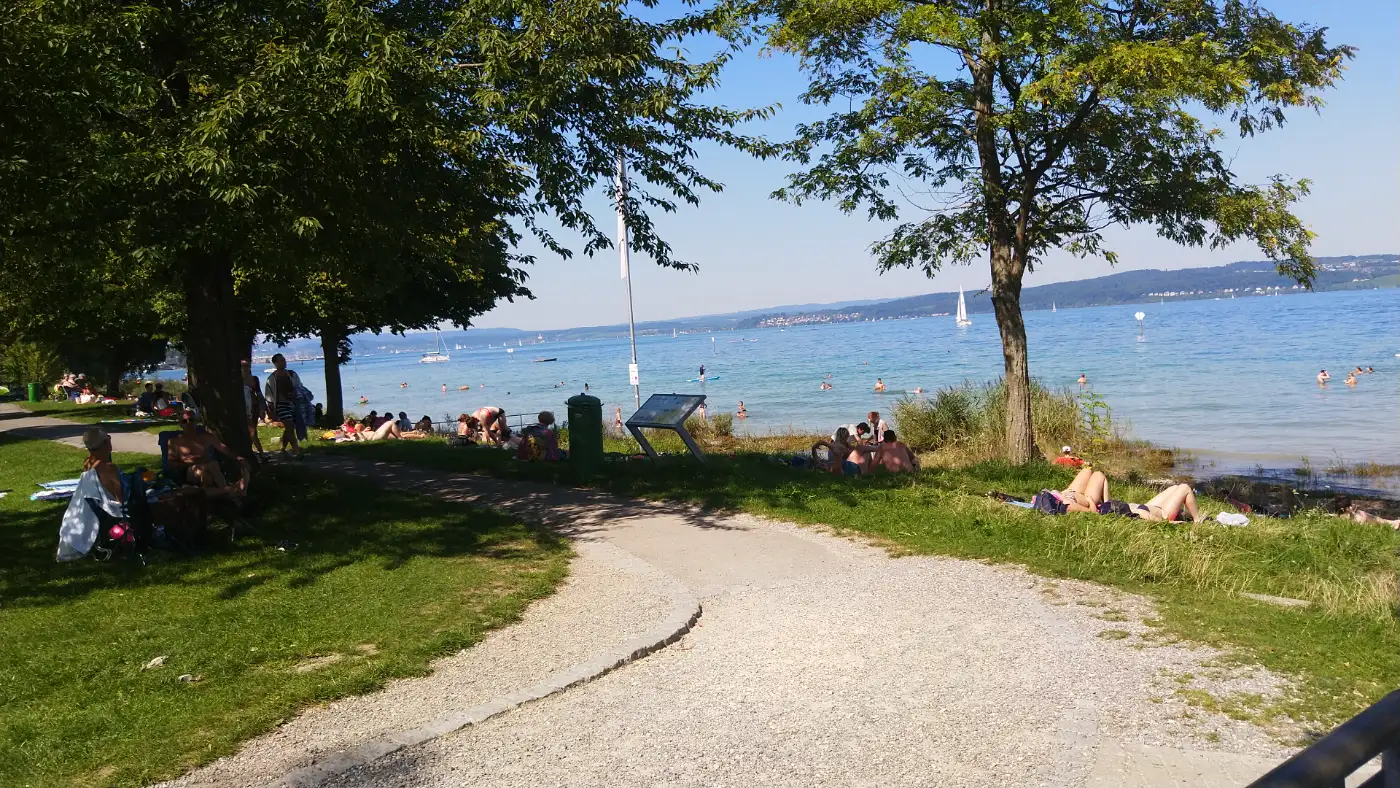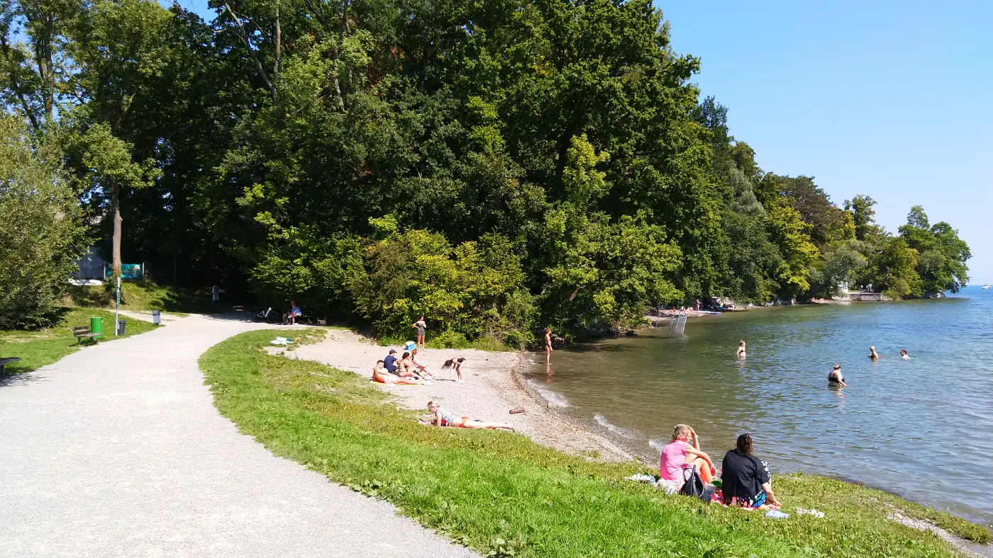 Zum Abschluss erreichen wir das Strandbad Horn, das weitläufige Wiesen und direkten Zugang zum Wasser bietet. Wir lassen den Blick über den Bodensee schweifen und spüren die Offenheit dieses Ortes. Hier endet unsere Wanderung an einem Punkt, der Erholung und Natur ideal verbindet. Der Weg von Konstanz bis hierher vereint Stadt, Seeufer und ruhige Abschnitte zu einer stimmigen Tour.Diese Tour wurde am 08.08.2025 von einer realen Person erwandert, fotografiert und beschrieben. Die GPS-Daten der Fotos wurden vor Ort erfasst und dienten zur exakten Rekonstruktion der Route.