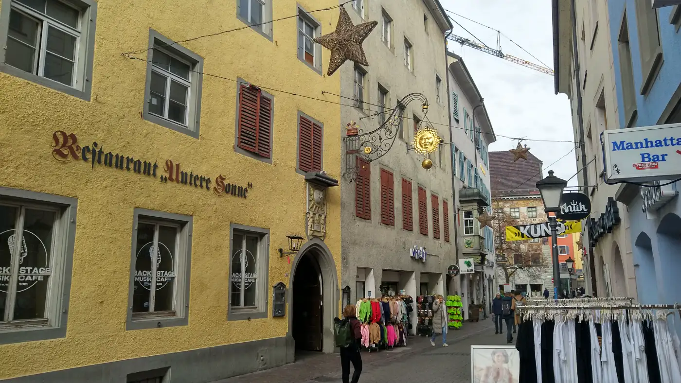 Entspannte Stadtwanderung von belebten Plätzen zu ruhigen Aussichtspunkten, entlang historischer Bauwerke, Parks und malerischer Wege am Bodensee. Wir starten unsere Wanderung am Konstanzer Bahnhof und wandern zur Marktstätte mit dem Kaiserbrunnen, einem der lebendigsten Plätze der Stadt. Der Kaiserbrunnen zeigt in seinen Figuren Anspielungen auf bedeutende Epochen der Stadtgeschichte. Zwischen Cafés, historischen Fassaden und dem nahen Hafen spüren wir sofort die besondere Atmosphäre am See. Unser Weg führt uns entlang belebter Gassen, in denen sich Alltag und Geschichte mischen. Schritt für Schritt lassen wir das geschäftige Zentrum hinter uns und stimmen uns auf die ruhigeren Abschnitte der Route ein.Schnetztor in Konstanz