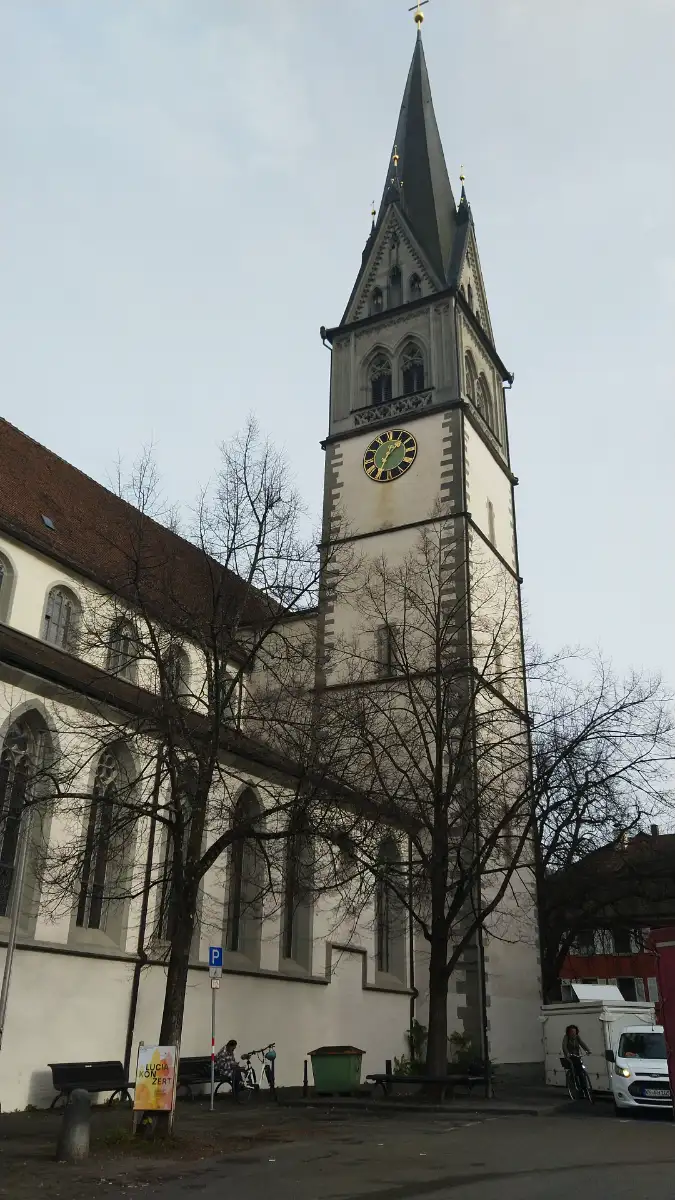Entlang der Hussenstraße, vorbei an der Stephanskirche und der Skulptur der drei schwörenden Finger, erreichen wir den Pulverturm. Der gedrungene Bau aus dem späten Mittelalter erinnert an die Zeit, als Konstanz von Mauern und Wehranlagen umgeben war und hier Schießpulver sicher gelagert wurde. Heute wirkt der Turm fast unscheinbar, doch seine Geschichte erzählt von einer strategisch bedeutsamen und stark befestigten Stadt. Von hier folgen wir dem Rheinufer, überqueren die Alte Rheinbrücke und wandern anschließend entlang der Theodor-Heuss-Straße bis zum Zähringerplatz.Evangelische Pauluskirche in Konstanz