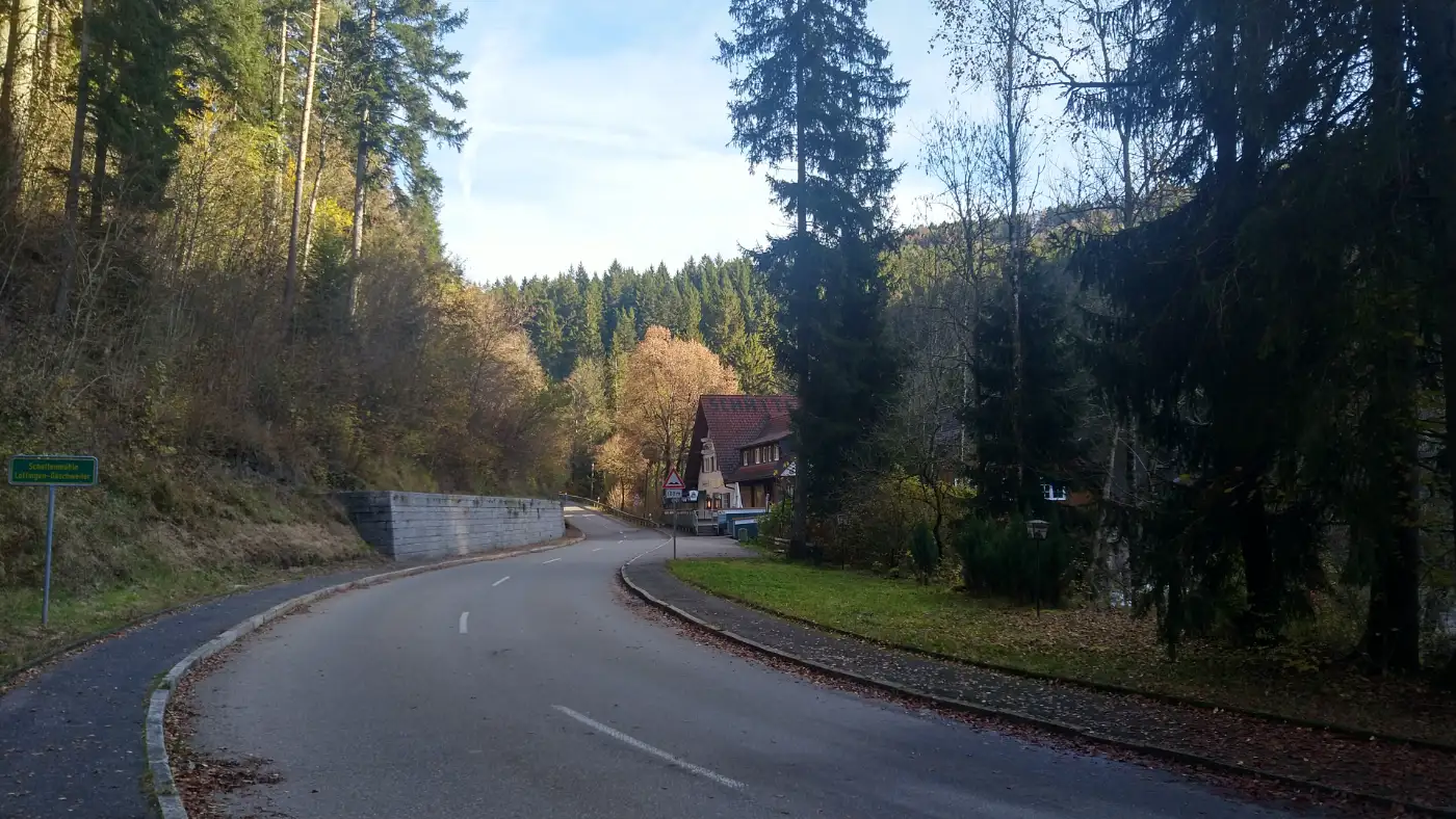 Unser Weg führt uns weiter nach Göschweiler, einem kleinen Ortsteil von Löffingen, der auf fast 900 m Höhe liegt und etwa 500 Einwohner zählt. Zwischen alten Bauernhöfen und gepflegten Gärten spüren wir die ruhige, ländliche Gelassenheit dieses Weilers. Wir durchqueren die ruhige Dorfmitte, folgen am Ortsrand der Straße in Richtung Wutachschlucht Bonndorf und genießen den Blick auf die umliegenden Wiesenhänge. Hier sammeln wir Kraft für den bevorstehenden Abstieg in eines der eindrucksvollsten Täler der Region.Weg zur Wutachschlucht