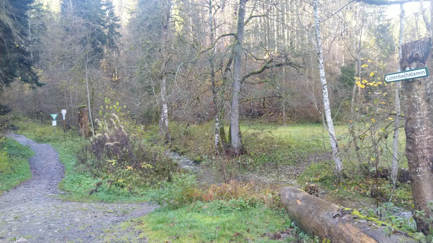 Tiefer in der Klamm erreichen wir die Wasserfälle des Lotenbachs, die in mehreren Stufen über glattgeschliffene Felsen stürzen. Millionen feiner Tropfen glitzern im Licht und erzeugen einen feinen Nebel, der die Luft angenehm kühl macht. Wir verweilen einen Moment, lauschen dem Tosen und beobachten, wie das Wasser seinen Weg ins Tal bahnt. Schließlich folgen wir dem Steig weiter bergauf, bis sich die enge Klamm öffnet und der Wald mehr Licht freigibt. Wenige Schritte später erreichen wir die Bushaltestelle "Lotenbachklamm", an der unsere Tour endet. Mit dem Blick zurück auf tosende Wasserfälle, schmale Steige und stille Waldpassagen bleibt das Gefühl, eine Wanderung erlebt zu haben, die Naturdrama und leise Schönheit eindrucksvoll miteinander verbindet.Diese Tour wurde am 05.11.2025 von einer realen Person erwandert, fotografiert und beschrieben. Die GPS-Daten der Fotos wurden vor Ort erfasst und dienten zur exakten Rekonstruktion der Route.