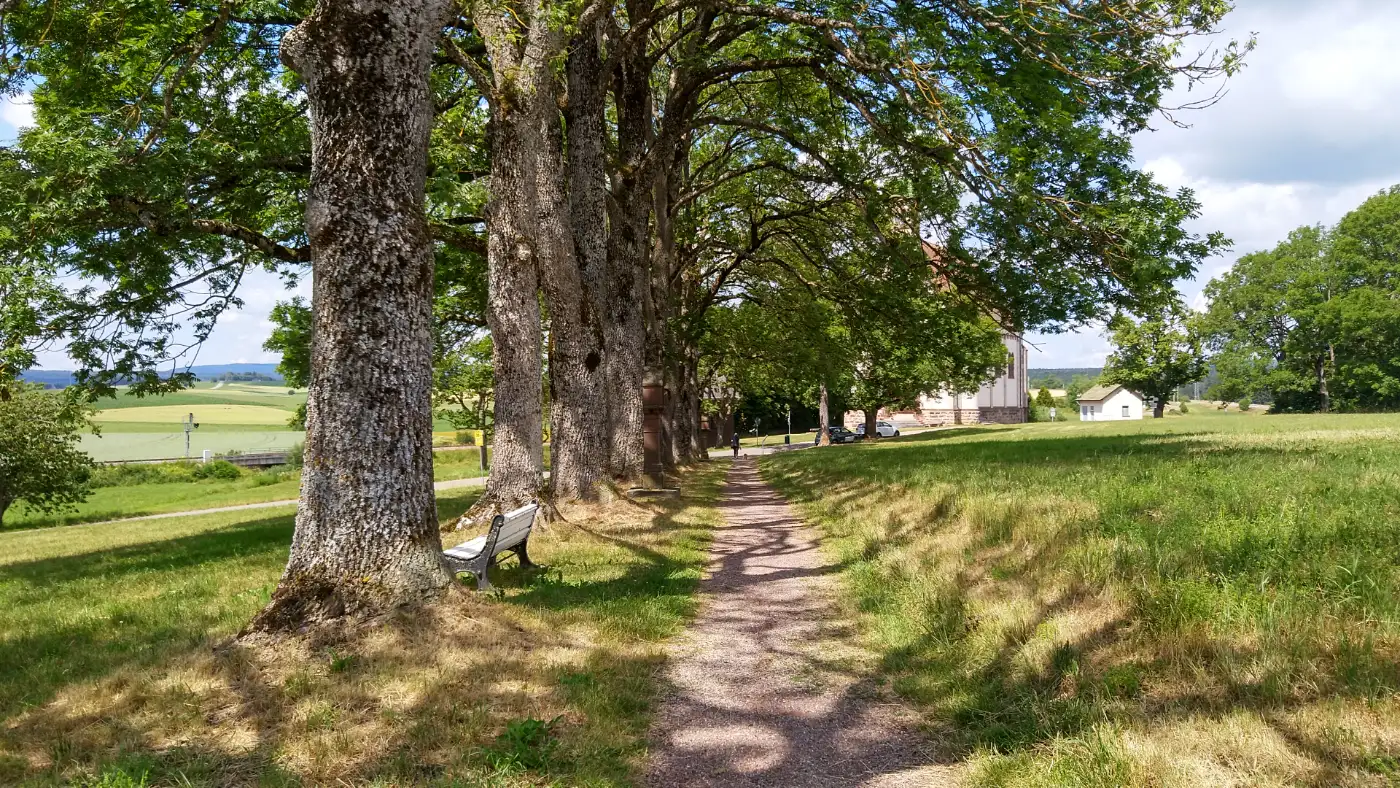 Unsere Tour beginnt am Bahnhof in Löffingen, wo wir den Gleisen linkerhand folgen und die Bahnhofstraße entlanggehen. Nach wenigen Minuten erreichen wir die Rötengasse, in die wir rechts einbiegen. Der Weg führt uns durch ein ruhiges Wohngebiet, bis wir an die Marienlandstraße gelangen. Hier setzen wir unsere Wanderung fort und folgen dem Kreuzweg, einem besinnlichen Pfad, der uns hinaufführt zur Witterschneekreuzkirche.Die Witterschneekreuzkirche