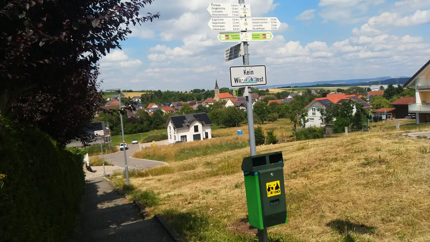 Von hier aus ist es nicht mehr weit bis zum Posthaus, wo wir die Straße überqueren und uns dem letzten Abschnitt der Tour widmen. Ein kleiner Pfad führt uns am Wassertretbecken vorbei und hinauf zum finalen, noch einmal steilen Anstieg Richtung Döggingen. Der Anstieg fordert auf den letzten Metern noch einmal etwas Kraft, doch oben angekommen öffnet sich der Blick auf das Dorf - ein stiller, ländlicher Ort, der zum Durchatmen einlädt. In Döggingen endet unsere Wanderung ganz praktisch am Bahnhof, von dem aus wir bequem weiterreisen oder die Erlebnisse der Tour noch etwas nachwirken lassen können. Eine abwechslungsreiche Route mit alpinen Momenten, stillen Pfaden, spannenden Durchgängen und eindrucksvoller Natur findet hier ihren ruhigen Abschluss.Diese Tour wurde am 04.07.2025 von einer realen Person erwandert, fotografiert und beschrieben. Die GPS-Daten der Fotos wurden vor Ort erfasst und dienten zur exakten Rekonstruktion der Route.