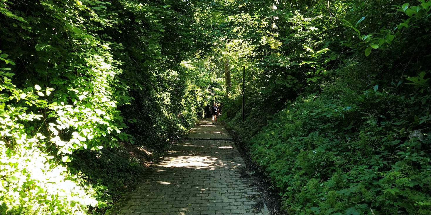 Von der Klinik aus beginnt unser Abstieg über die Teufelstreppe, eine historische Treppenanlage, die uns hinunter ins Zentrum von Überlingen führt. Überlingen ist eine der schönsten Städte am Bodensee und beeindruckt mit seiner historischen Altstadt, den liebevoll restaurierten Fachwerkhäusern und dem tropischen Bodenseeufer, das mit Palmen und mediterranen Pflanzen gesäumt ist.