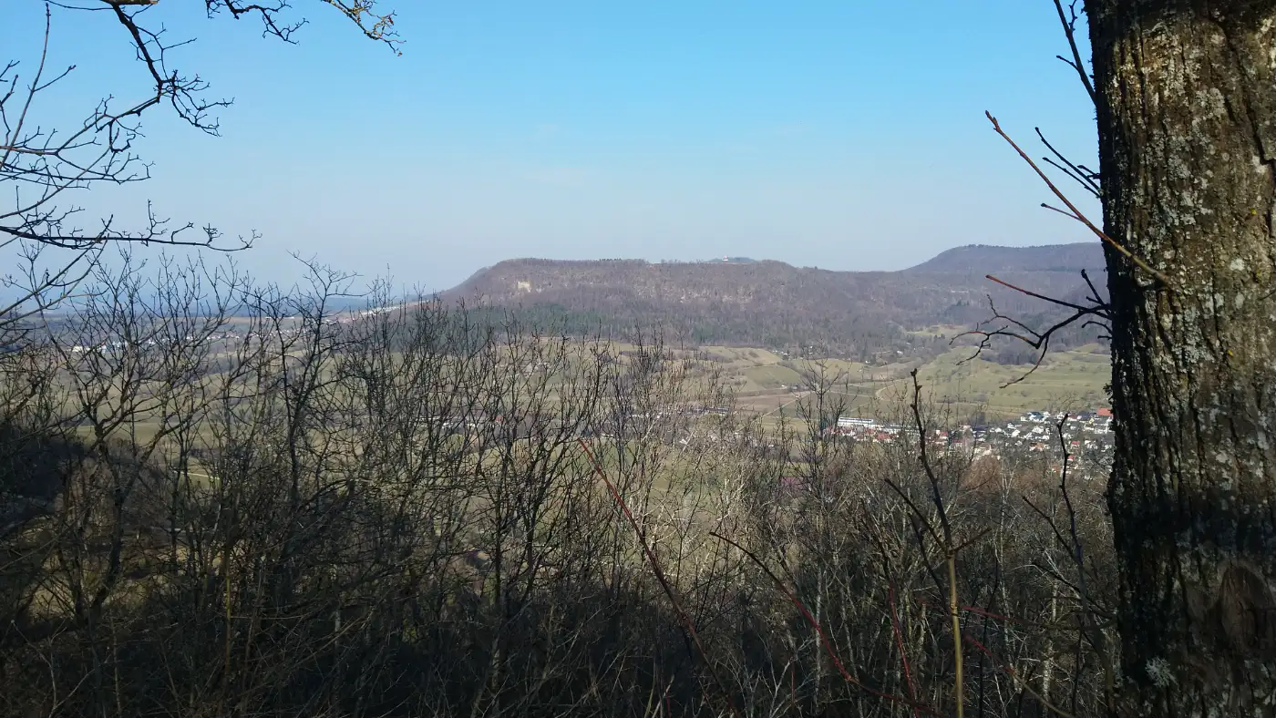 Nach einer Weile erreichen wir den Bismarckkopf, benannt nach Otto von Bismarck, dem ehemaligen Reichskanzler. Eine kleine Plattform eröffnet uns eine großartige Aussicht: Wir blicken zurück auf Mössingen, weiter nach Tübingen, und bei besonders klarer Sicht sogar bis zum Stuttgarter Fernsehturm und den Schwarzwald im Westen.Segelfluggelände Farrenberg