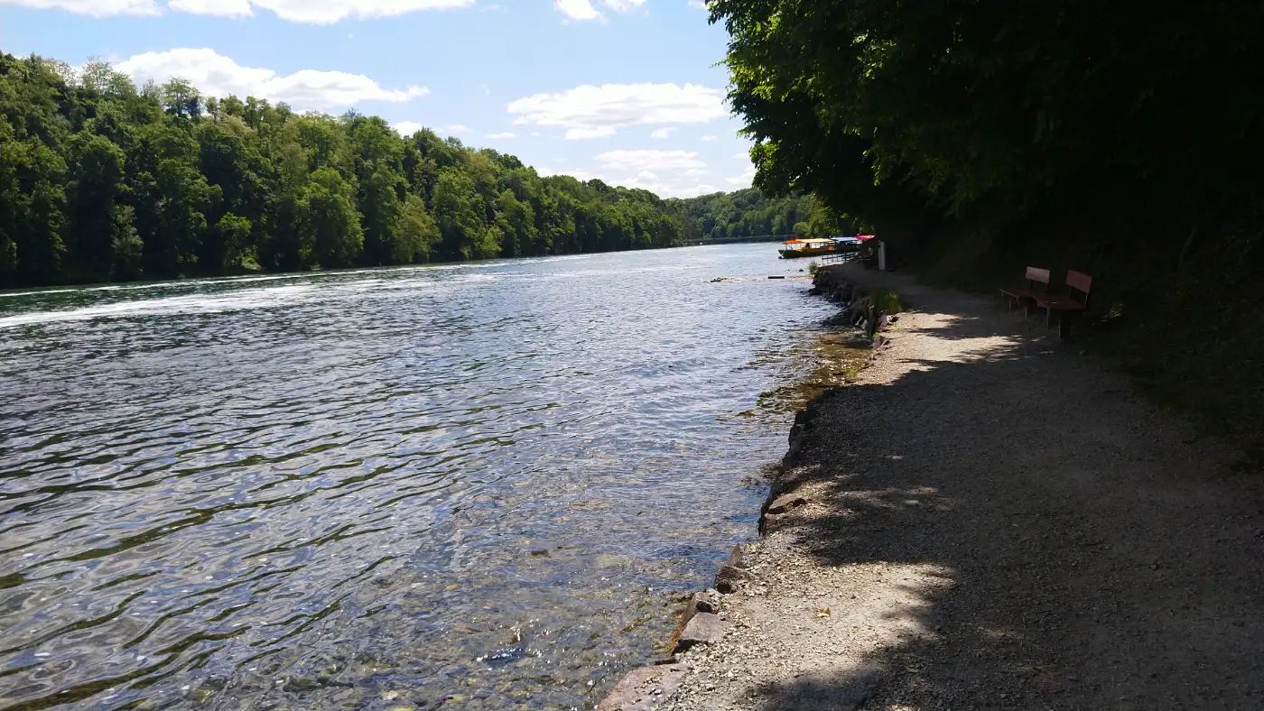 Nachdem wir die Zollbrücke überquert haben, führt uns ein Fußweg rechts hinauf ins Dorf Altenburg. Wir durchqueren den kleinen Ort und folgen dem Wegweiser in Richtung Rheinfall. Schon bald erreichen wir die nächste ehemalige Zollstation im schweizerischen Nohl. Eine schmale Straße bringt uns hinunter zum Rheinufer, wo wir über die Nohlbrücke auf die andere Seite des Rheins gelangen - um auch die andere Seite des Rheinfalls sehen zu können. Zum Abschluss führt uns die Eisenbahnbrücke zurück zum Bahnhof in Neuhausen.Erlebe die Kraft des Wassers und die Ruhe der Geschichte - wandere vom tosenden Rheinfall zum stillen Kloster Rheinau!