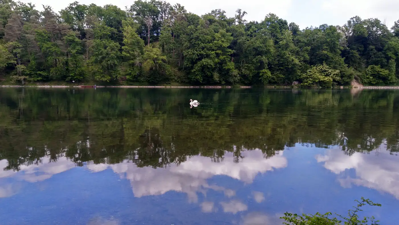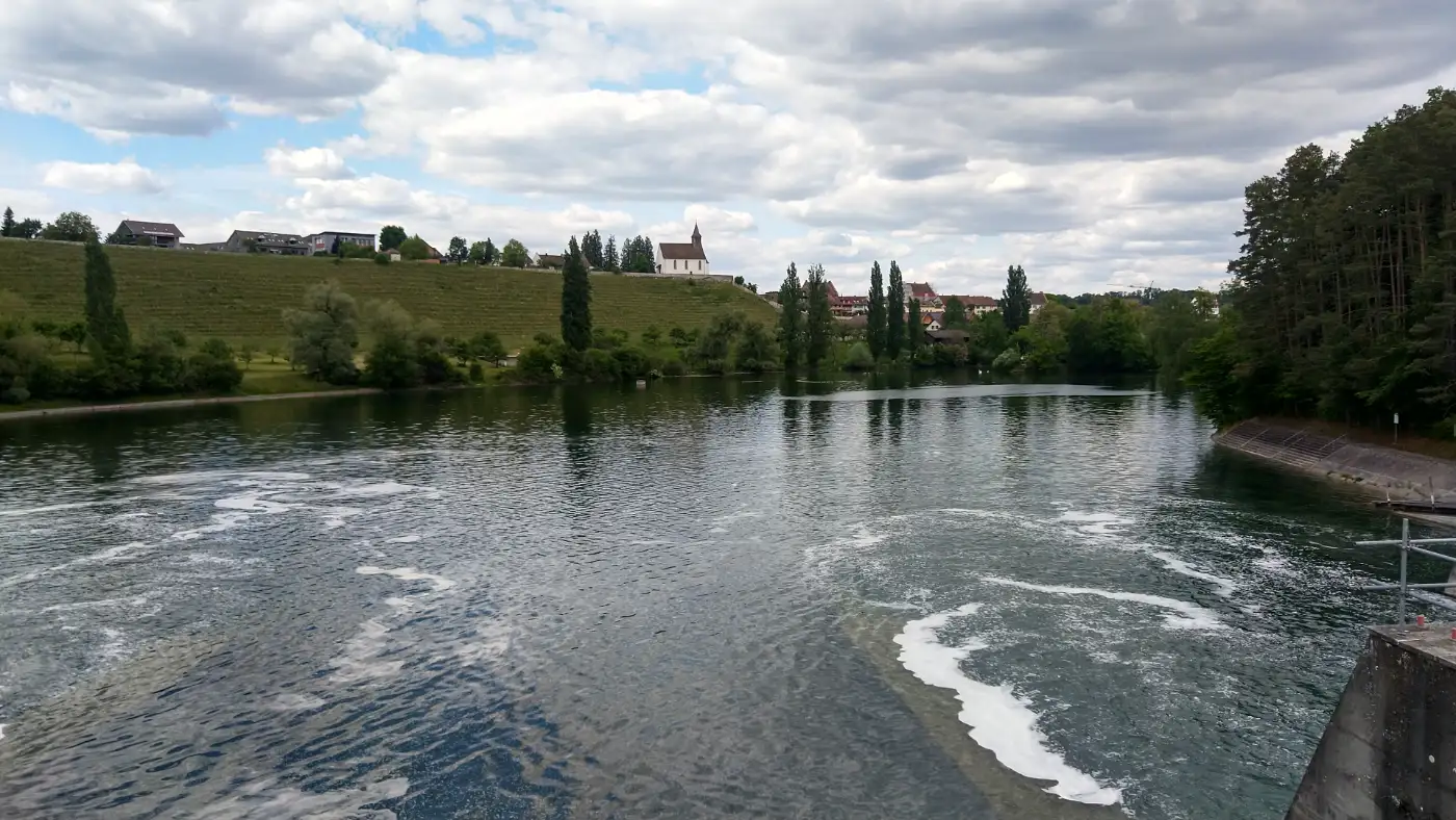 Nach dem Überqueren des Rheins beim Kraftwerk Rheinau setzen wir unsere Wanderung entlang des malerischen Uferwegs fort. Schon bald erreichen wir die Klosterinsel Rheinau, eingebettet in eine Schleife des Hochrheins - ein Ort von beeindruckender historischer und spiritueller Bedeutung.Kloster Rheinau