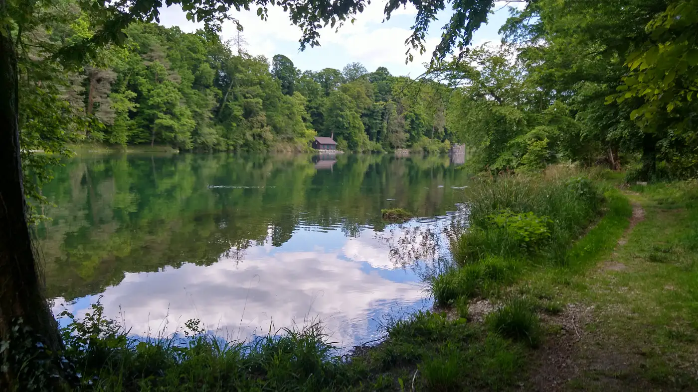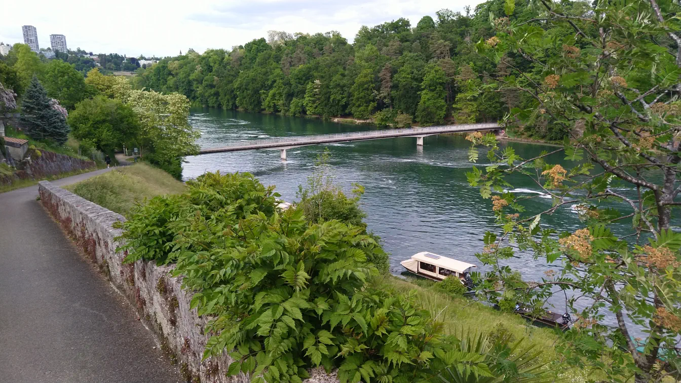 Von nun an folgen wir dem idyllischen Uferweg am Rhein entlang, stets begleitet vom Rauschen des Wassers und dem Blick auf das gegenüberliegende Flussufer. Der Weg führt uns vorbei an der modernen Nohlbrücke. Weiter flussabwärts erreichen wir schließlich das Kraftwerk Rheinau, ein historisches Laufwasserkraftwerk, das bereits seit 1928 in Betrieb ist. Über eine Fußgängerpassage am Kraftwerk können wir hier auf die andere Rheinseite wechseln - ein markanter Punkt auf unserer Route.Klosterinsel Rheinau