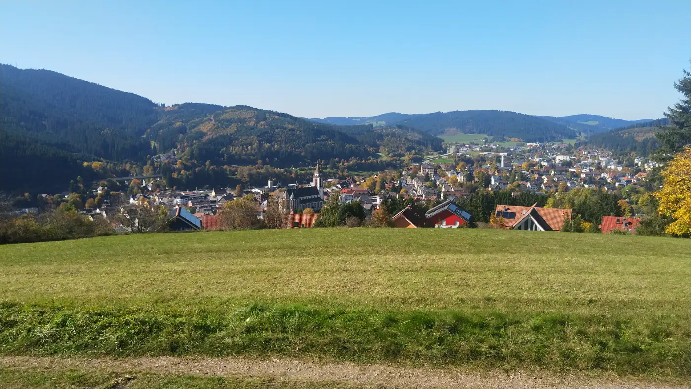 Unsere Wanderung beginnt im Herzen von Titisee-Neustadt, wo das markante Münster St. Jakobus das Stadtbild prägt. Der schlanke Turm des Münsters ragt 68 Meter in die Höhe und macht den Bau schon von weitem sichtbar; das Gesamtensemble wurde 1897-1901 im neugotischen Stil nach Plänen aus dem Bauamt der Erzdiözese errichtet. Im Inneren fallen uns die großzügigen Fenster und die reich gestalteten Altäre auf — besonders der Marienaltar im Seitenschiff gilt als kunsthistorisches Kleinod. Auch die Orgel und das weithin hörbare Geläut gehören zu den charakteristischen Merkmalen des Münsters, die dem Raum seine besondere Klangfülle verleihen. Mit diesen Eindrücken im Gepäck verlassen wir das Zentrum und folgen unserem Weg in Richtung Fullberg.Kriegerdenkmal Fullbergkreuz