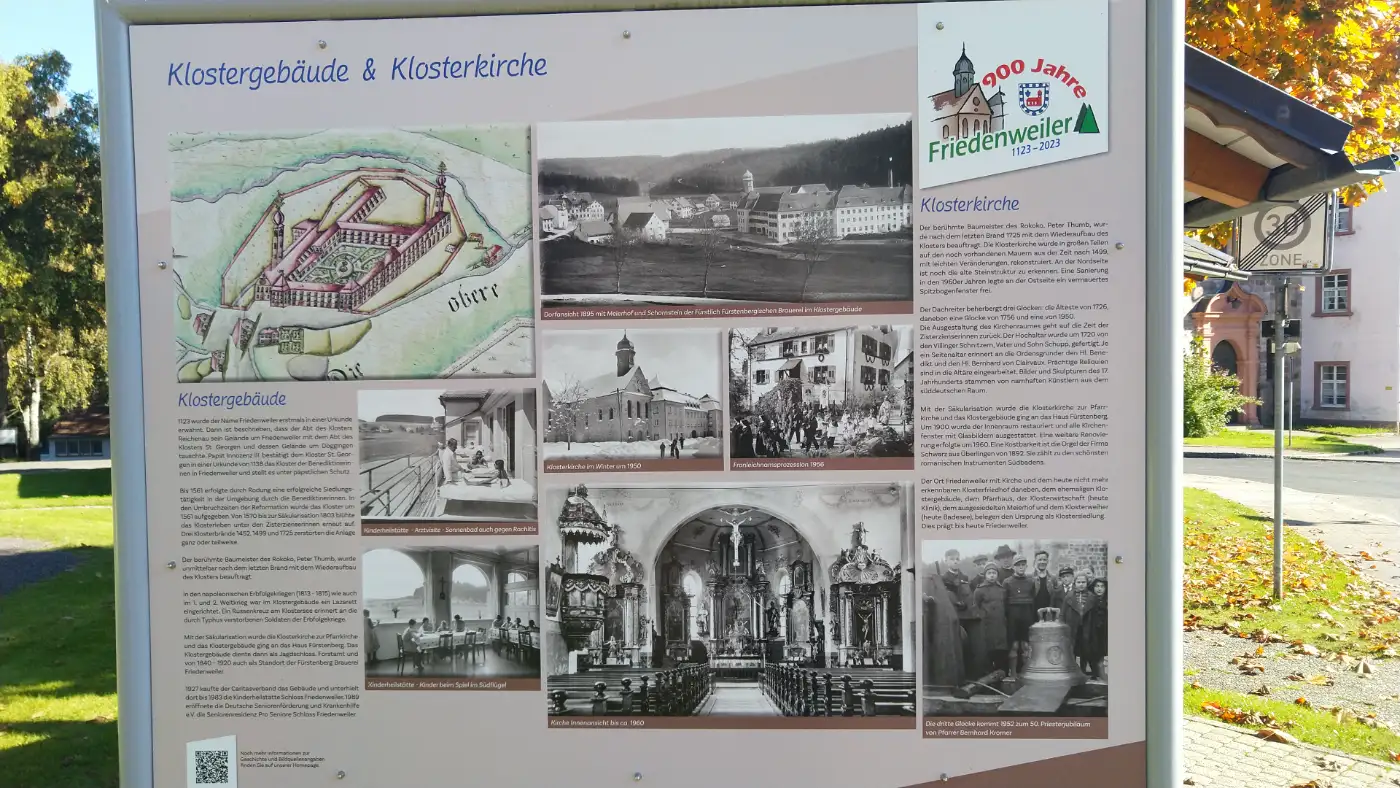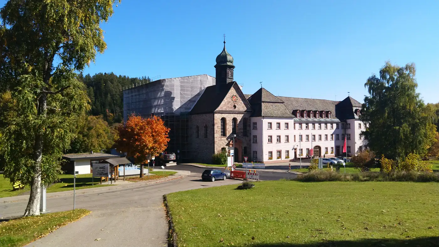 In Friedenweiler angekommen, stoßen wir auf die Anlage des ehemaligen Benediktinerinnenklosters, dessen Ursprünge bis ins 12. Jahrhundert zurückreichen. Einst war es ein Ort des Gebets und der Besinnung, heute dient das geschichtsträchtige Gebäude als Seniorenresidenz. Zwischen den alten Mauern ist dennoch der Geist vergangener Zeiten spürbar. Wir schlendern durch den davor liegenden kleinen Park, bevor wir uns auf den Weg zu einem Ort machen, an dem sich einst ein tragisches Verbrechen ereignete - dem Mörderkreuz.Das Mörderkreuz