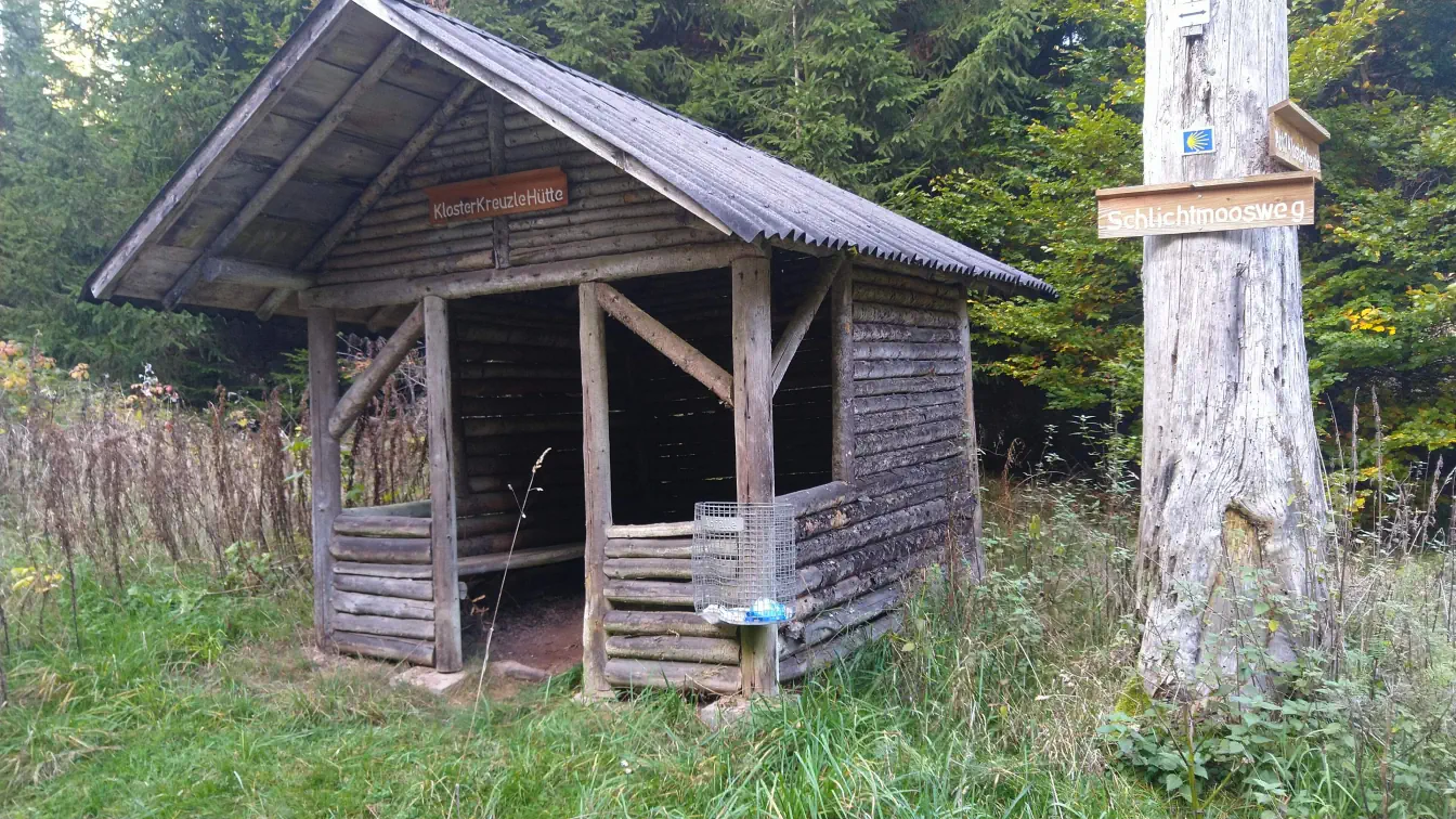 Unser Pfad führt stetig bergauf zur Schillingskapelle, die auf etwa 962 Metern Höhe mitten im dichten Wald verborgen liegt. Die kleine, weiß verputzte Kapelle wurde im 19. Jahrhundert als Dankkapelle errichtet und ist bis heute ein stiller Ort des Gebets und der Einkehr. Umgeben von hohen Fichten und dem Duft von Moos und Erde wirkt sie wie ein Zufluchtsort fern der Welt. Wir genießen die Stille und spüren die besondere Atmosphäre dieses abgeschiedenen Ortes, bevor wir unseren Weg weiter fortsetzen.Ehemaliges Kloster Friedenweiler