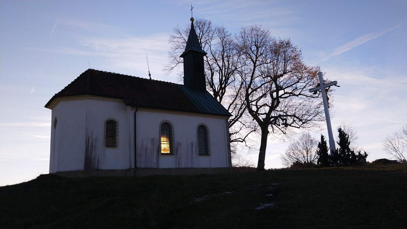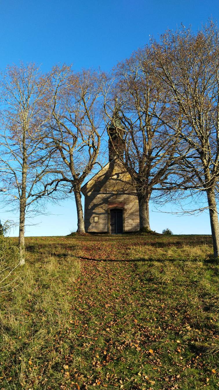 Unser nächstes Ziel ist der Oberdigisheimer Stausee, der im Sommer zum Baden einlädt. Der Stausee bietet großzügige Liegewiesen sowie einen Rundweg um den See.Kapelle auf dem Scheibenbühl