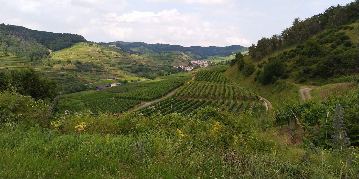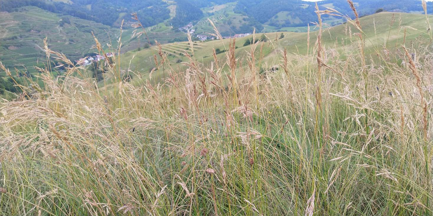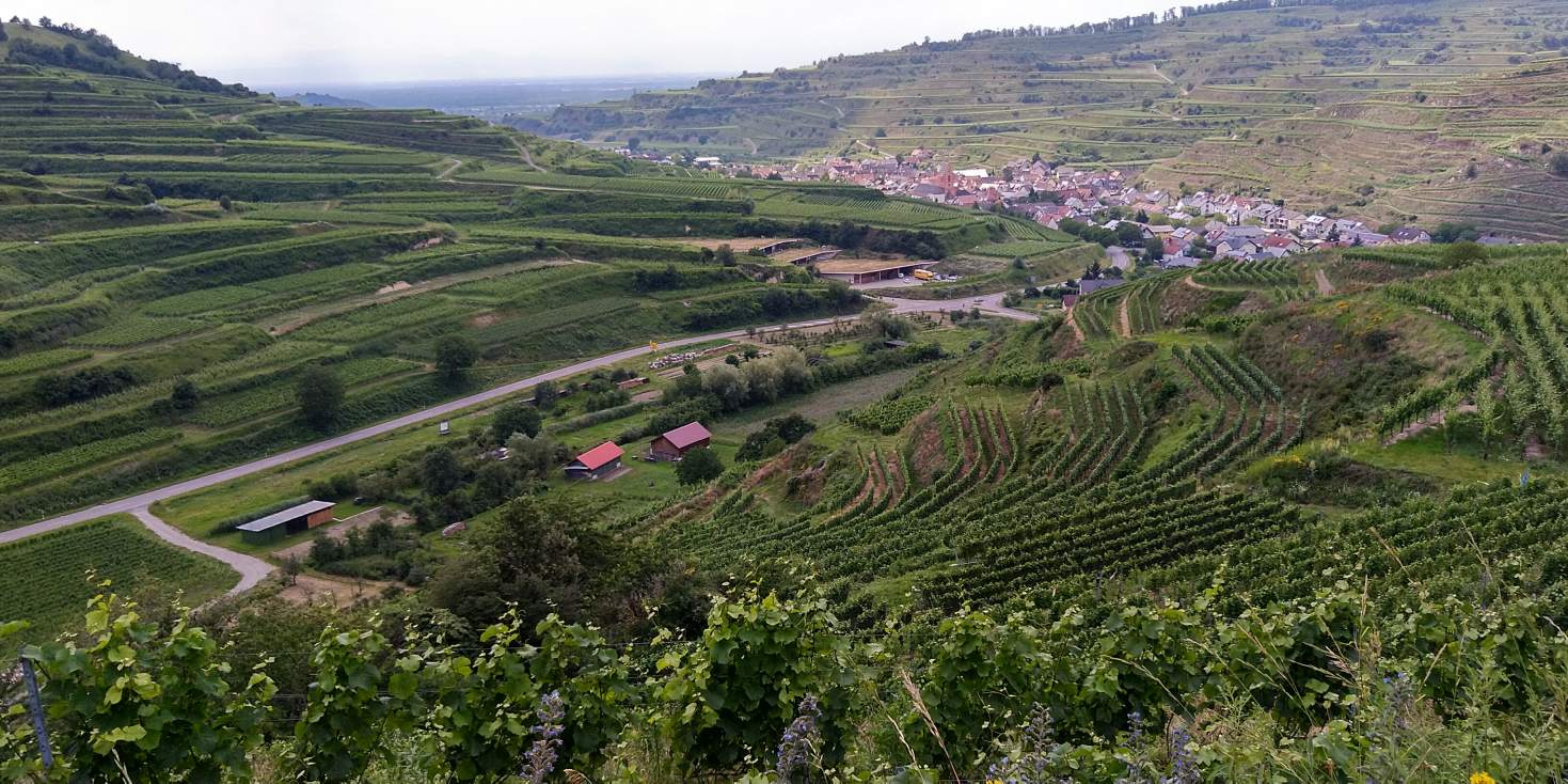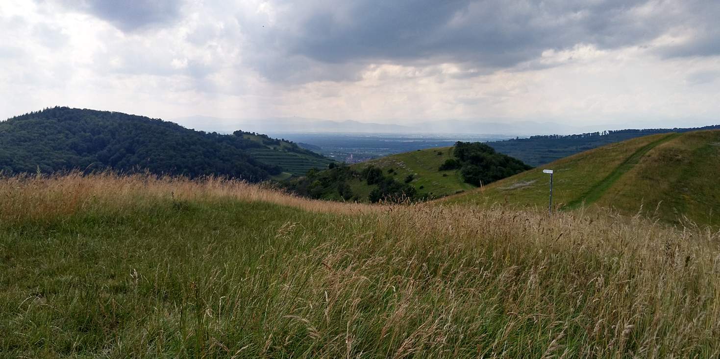 Vom Badloch aus steigen wir weiter auf einem Naturpfad Richtung Badberg-Gipfel (435 m). Der Weg verläuft größtenteils über offene Grashänge, die bei gutem Wetter herrliche Panoramaaussichten bieten: Über die sanften Rebterrassen des Kaiserstuhls hinweg schweift der Blick zum Schwarzwald im Osten und zu den Vogesen im Westen. An klaren Tagen lässt sich sogar der Mont Ventoux in Frankreich erahnen.Geologische Entdeckungen