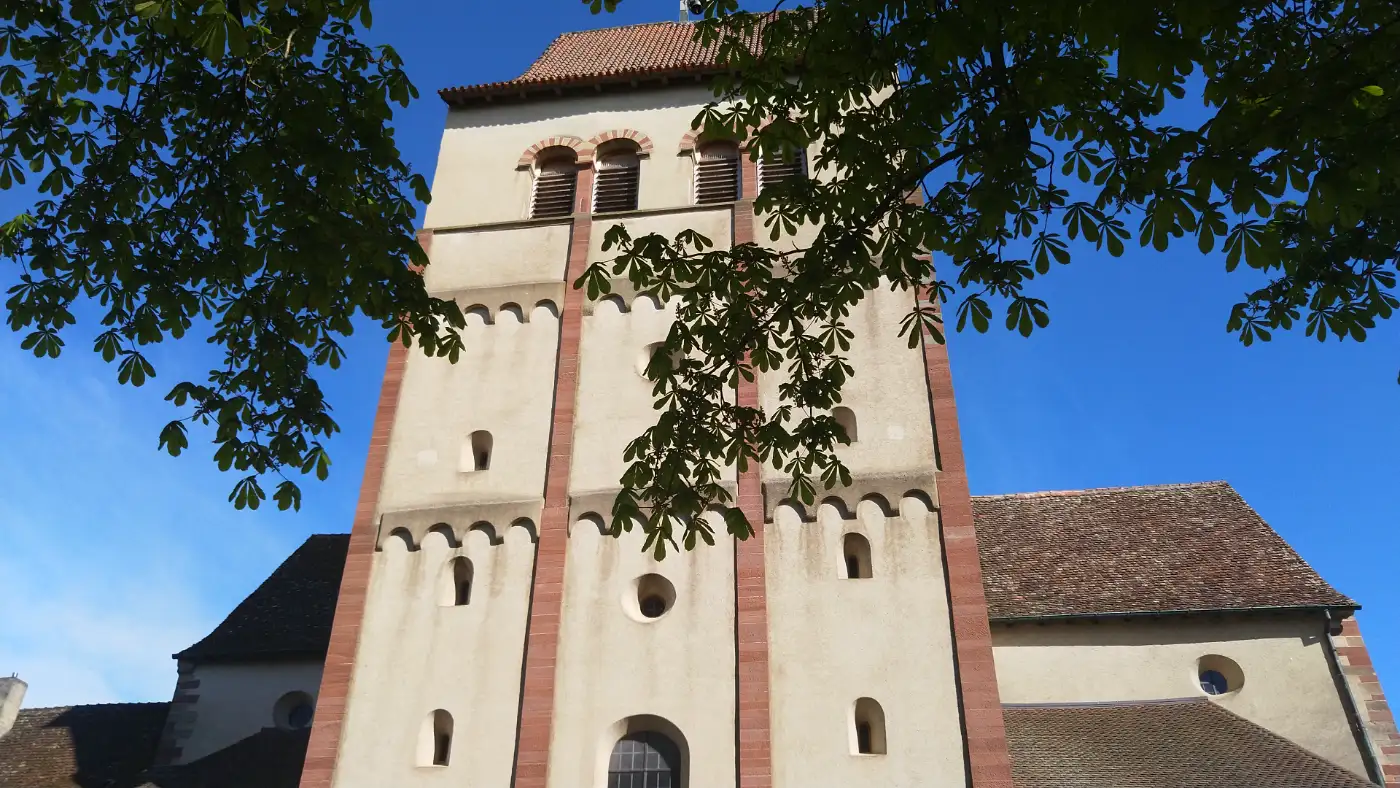 Von hier aus kann man sich bereits auf die zahlreichen kulturellen und historischen Highlights freuen: das UNESCO-Welterbe Kloster Reichenau, die drei romanischen Kirchen - St. Georg, St. Maria und Markus sowie die Münsterkirche St. Maria und Markus - und natürlich die wunderschöne Natur- und Kulturlandschaft, die zu Recht als Schatz des Bodensees gilt. Kurz nach der Statue des heiligen Pirmin biegen wir rechts ab und folgen einem schmalen, idyllischen Uferpfad, der direkt am Bodensee entlangführt. Der Weg ist gesäumt von alten Obstbäumen und bietet herrliche Ausblicke auf das Wasser - mit etwas Glück entdecken wir Reiher oder Kormorane, die auf den Steinen in der Uferzone rasten. In der Ferne ragt bereits das markante Turmpaar des Münsters von Reichenau-Mittelzell auf - unser nächstes Ziel.Kloster Reichenau