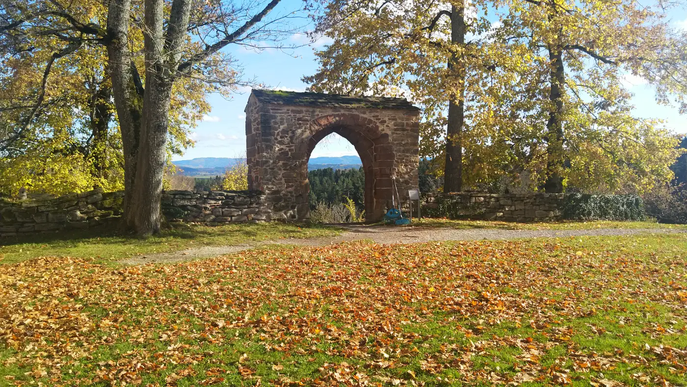 Unser Pfad führt uns weiter zum ehemaligen Dominikanerinnenkloster Kirchberg, das auf einer bewaldeten Anhöhe zwischen Schwarzwald und Schwäbischer Alb liegt. Gegründet wurde die Klosteranlage bereits im Jahr 1237. Die Anlage ist von einer mächtigen Wehrmauer umgeben und wirkt von weitem wie ein kleines, historisches Dorf. Heute beherbergt das Anwesen das Berneuchener Haus, ein Tagungs- und Einkehrzentrum, das Seminare, geistliche Angebote und Übernachtungsmöglichkeiten in ruhiger Umgebung anbietet. Wir durchqueren das Tor, atmen die besondere Stille dieses Ortes und nehmen die Spuren der langen Geschichte in uns auf, bevor wir unseren Weg Richtung Haigerloch fortsetzen.Klosterfriedhof