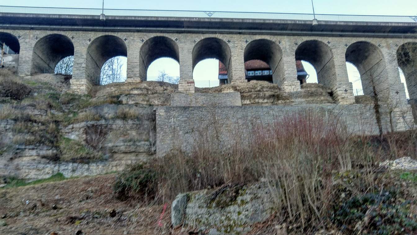 Am höchsten Punkt des Höllensteins befindet sich eine gefasste Quelle, aus der reines Quellwasser sprudelt - sie wird auch als Höllensteinquelle bezeichnet. Das Wasser speist einen kleinen Bachlauf, der sich in den Neckar ergießt. Nahe der Quelle entdecken wir zudem ein felsiges Relief, das eine mystische Figur mit Dornenkrone darstellt - vermutlich Christus, möglicherweise eine alte Wegmarke oder ein Ort der stillen Verehrung, dessen Ursprung bis heute nicht eindeutig geklärt ist.Technik trifft Natur