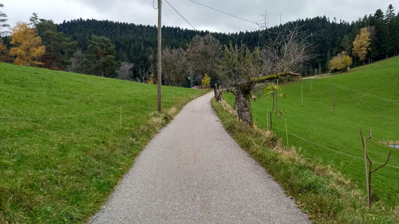 Da auf dem Mooswaldkopf derzeit keine Bewirtung möglich ist, lohnt sich ein Stopp im Höhengasthaus Heuwies - einem traditionsreichen Gasthof auf halber Strecke. Auf einer sonnigen Anhöhe gelegen, bietet er weite Blicke über die sanften Hügel des mittleren Schwarzwalds. Wir gönnen uns eine Rast, genießen die Schwarzwälder Küche und lassen den Blick über Wälder und Wiesen schweifen. In der stillen Atmosphäre dieses Ortes spüren wir die Ruhe, die den Reiz des Wanderns ausmacht, bevor wir gestärkt den Weg in Richtung Fohrenbühl fortsetzen.Diese Tour wurde am 28.10.2025 von einer realen Person erwandert, fotografiert und beschrieben. Die GPS-Daten der Fotos wurden vor Ort erfasst und dienten zur exakten Rekonstruktion der Route.