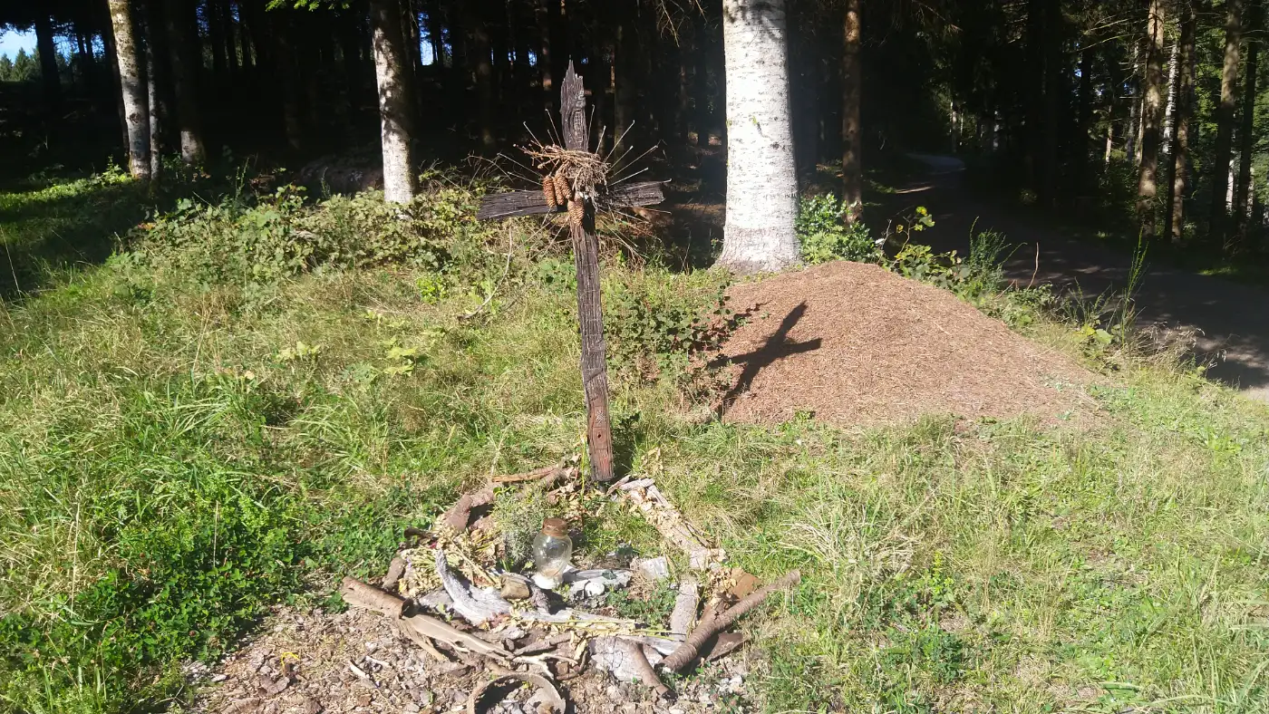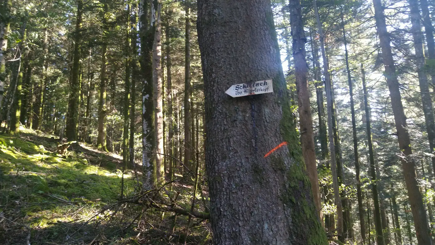 Unser Anstieg führt uns durch dichte Waldhänge, bis wir in der Nähe des Teisenhofs auf ein schlichtes Gedenkkreuz stoßen. Der schmale Platz wirkt wie ein stiller Erinnerungsort, an dem Natur und Geschichte miteinander verschmelzen. Die Inschrift nennt einen Namen, bleibt aber für uns voller Rätsel. Wem hier gedacht wird, wissen wohl nur die Menschen vor Ort. Für uns ist es ein Moment des Innehaltens - ein kurzer Halt, bevor wir weiter aufsteigen, begleitet vom leisen Rauschen der Bäume.Teisenkopf Aussichtsturm