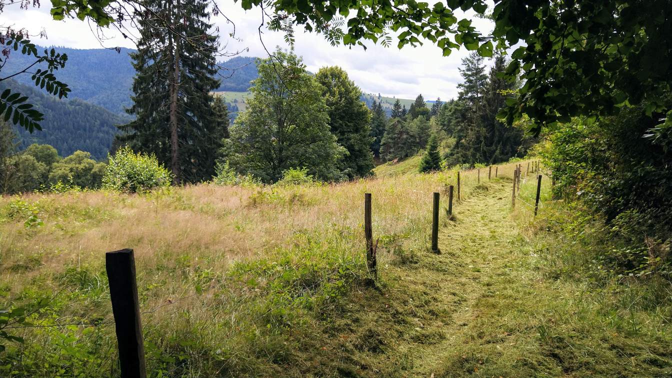 Unsere Tour startet am Friedhof in Schönau im Schwarzwald, eingebettet im idyllischen Wiesental. Von dort steigen wir zur Talstraße hinunter und folgen dem Felsenweg hinauf zur kleinen, aber geschichtsträchtigen evangelischen Kirche, die sich malerisch über dem Ort erhebt. Der Weg führt uns bald auf den Wanderpfad mit der blauen Raute, der uns durch abwechslungsreiche Wald- und Wiesenlandschaften begleitet.Ochsenberg und Mittelbühl