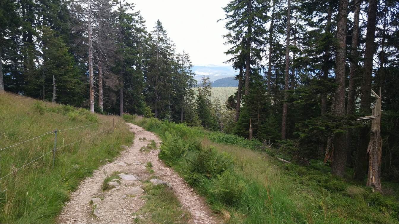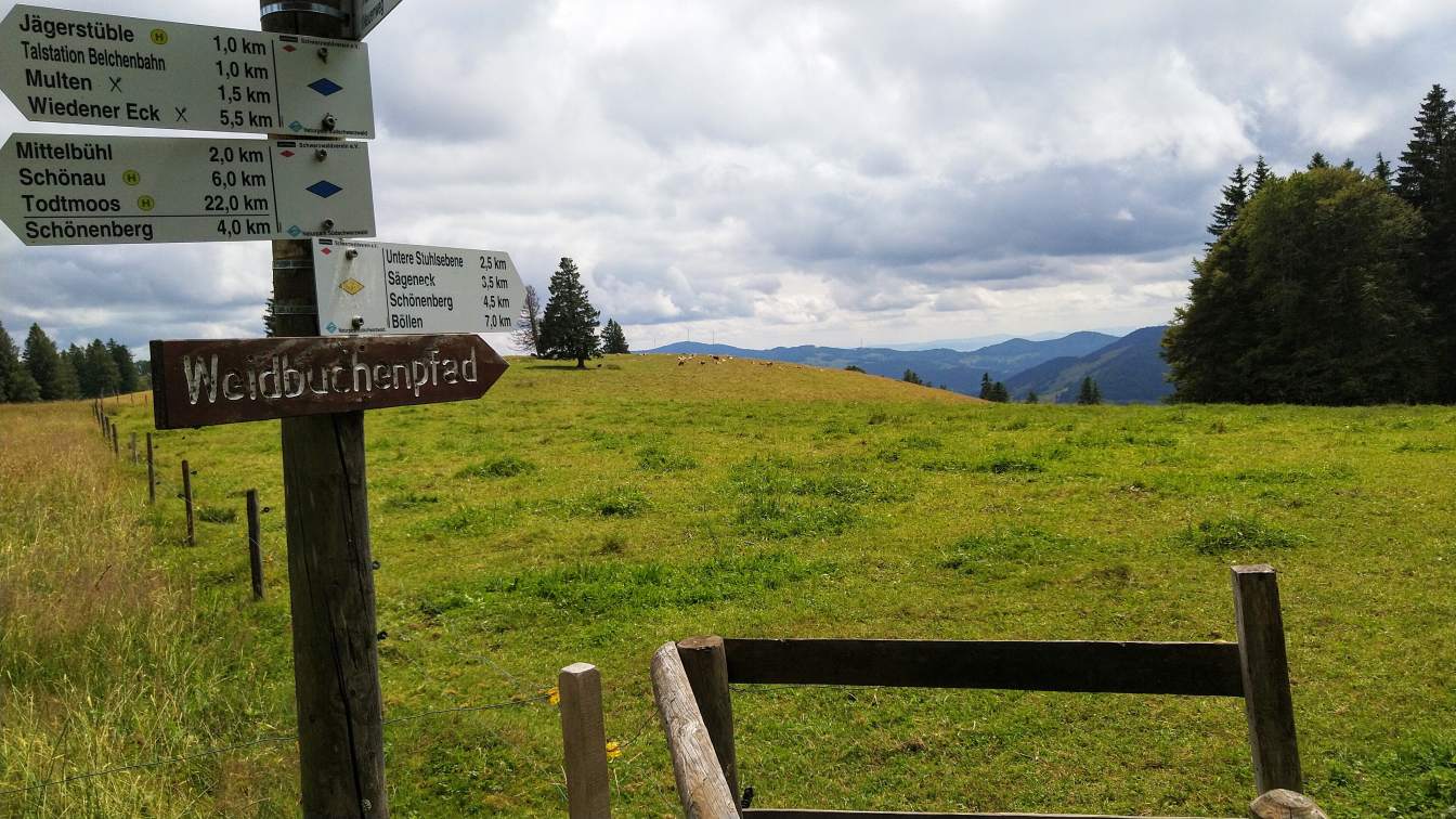 Am Böllner Eck, einem wichtigen Knotenpunkt mehrerer Wanderwege, erreichen wir allmählich den Belchenbereich. Das Belchenhaus, etwas unterhalb des Gipfels gelegen, lädt zu einer verdienten Rast ein - mit regionaler Küche, Vesper und Panoramablick.Gipfel des Belchens