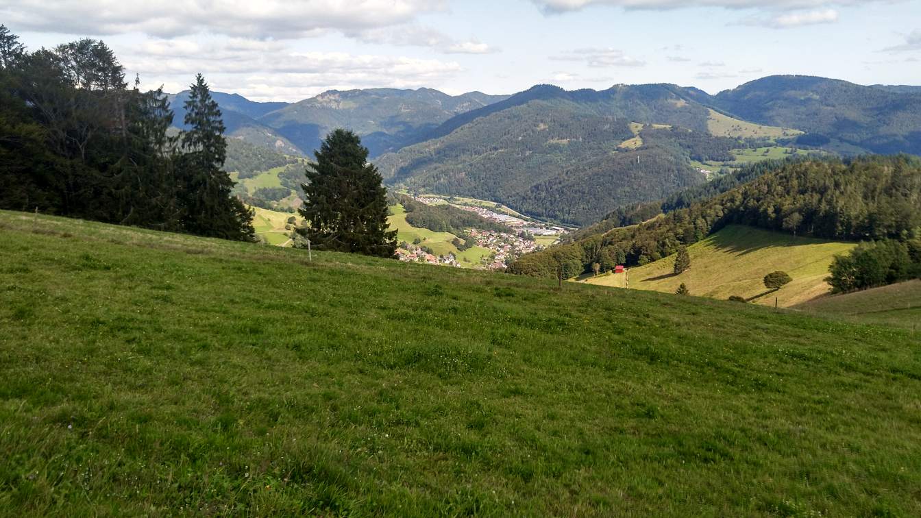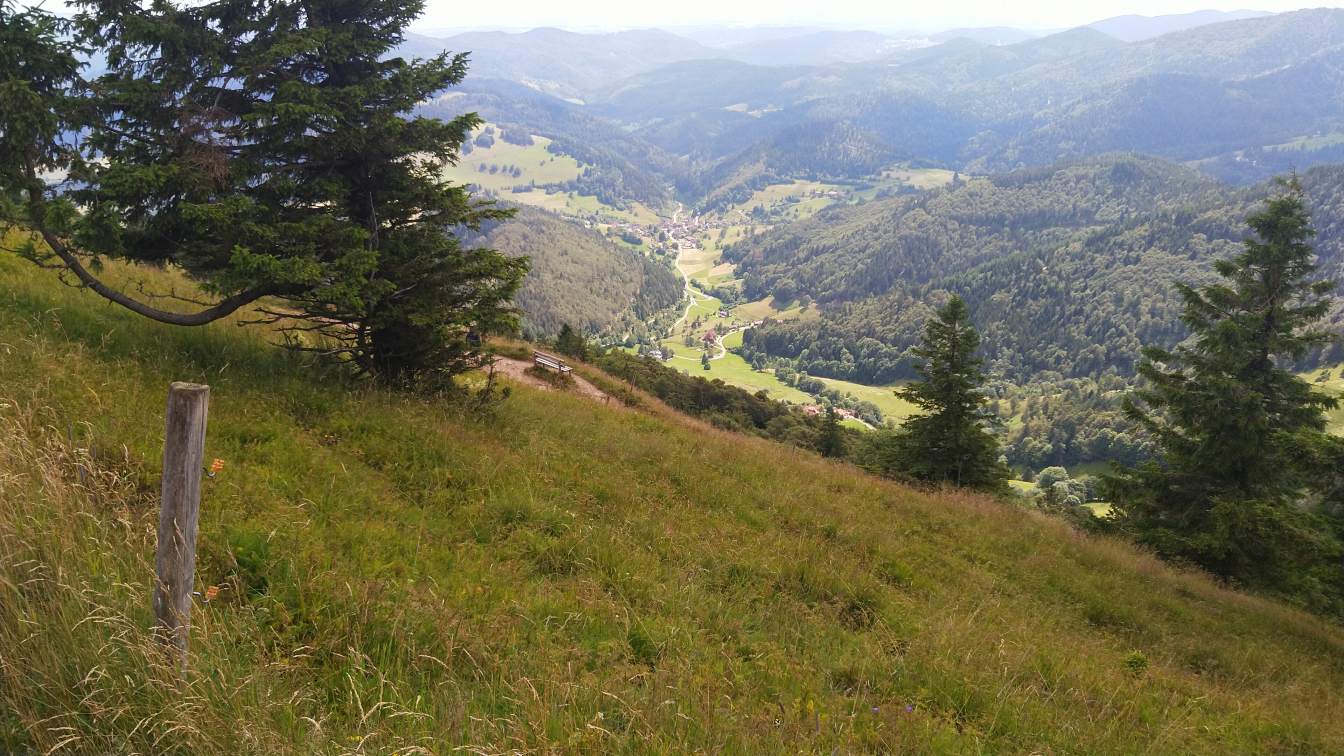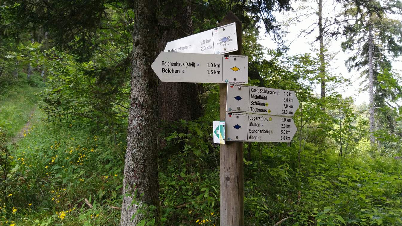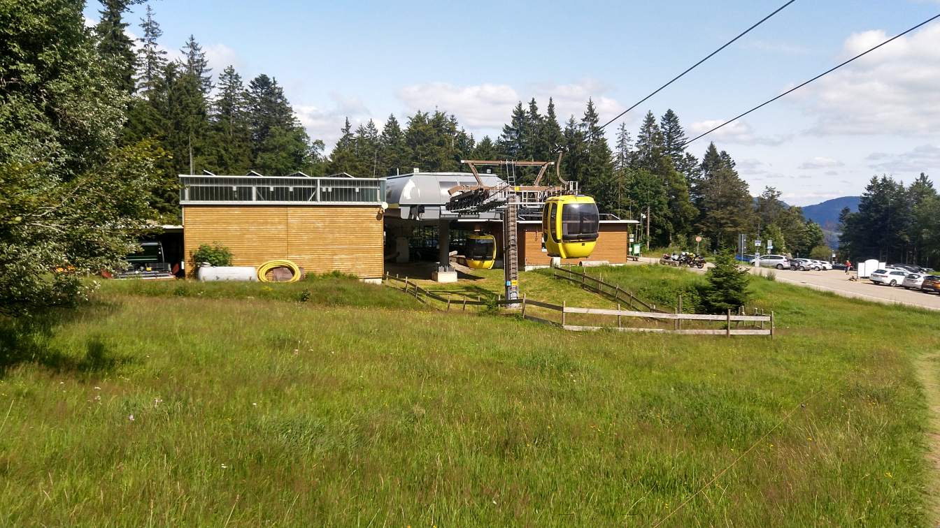 Von hier aus ist es nur noch ein kurzer Aufstieg zum Gipfel des Belchens (1.414 m), einem der markantesten Schwarzwaldberge. Der Ausblick vom Belchen ist legendär: Bei Föhnwetter zeigen sich die schneebedeckten Gipfel der Schweizer Alpen, das Elsass, die Rheinebene und die benachbarten Schwarzwaldberge Feldberg, Herzogenhorn und Blauen.Talstation der Belchenbahn