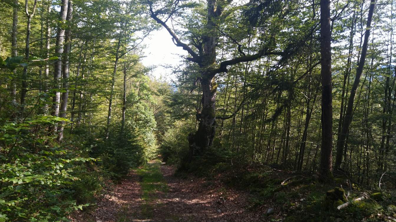 Ein besonderer Aussichtspunkt ist der Rabenfelsen: Von hier aus öffnet sich der Blick tief ins Tal und bei guter Sicht bis zu den Vogesen im Westen. Weiter geht es über die Obere Stuhlsebene, eine weitläufige Hochebene, die ihren Namen von früheren Alpwirtschaften hat. Die Natur wird hier zunehmend alpiner: Kiefern und Fichten weichen offenen Heideflächen und knorrigen Bergahornen.Böllner Eck
