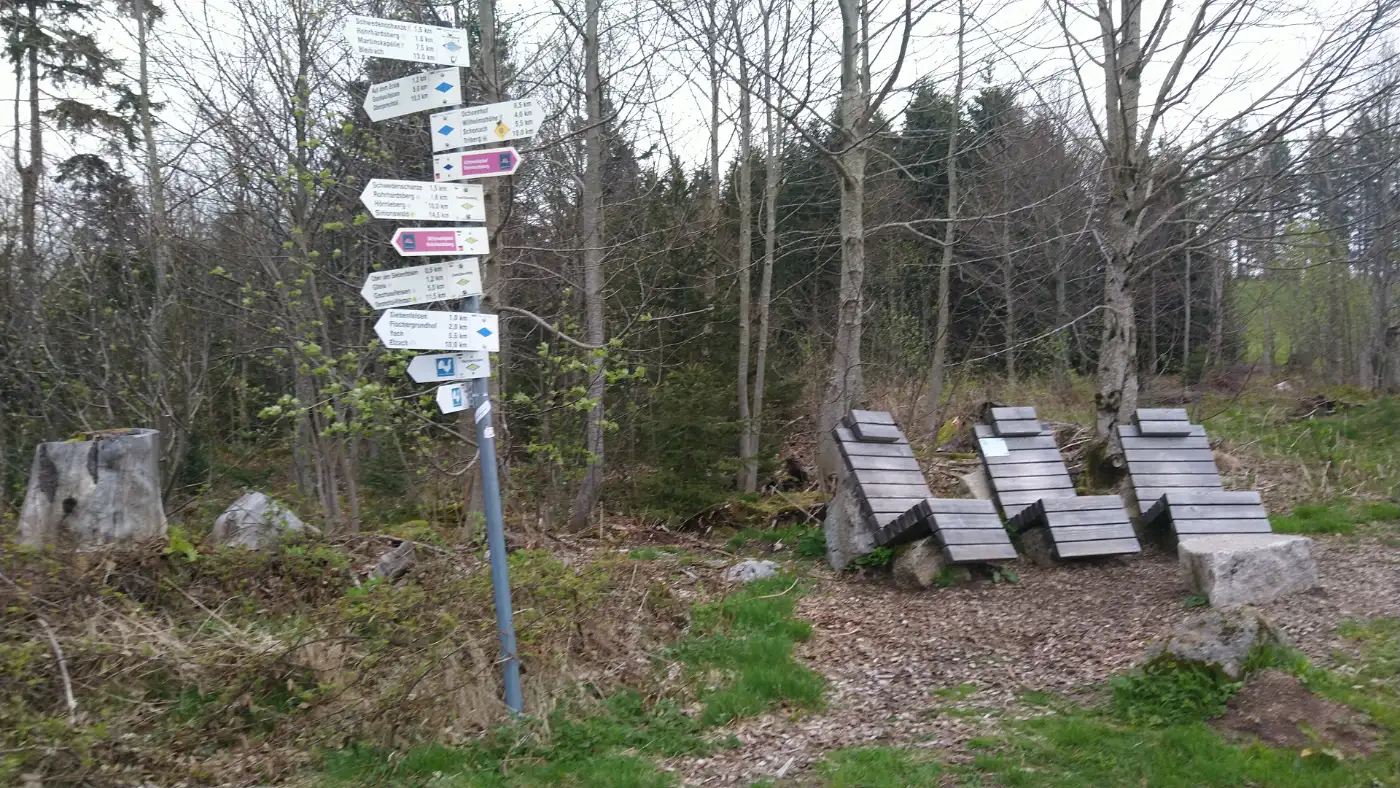 Unsere Rundwanderung zum Siebenfelsen beginnt in Schonach an der Bushaltestelle Triberger Straße. Wir durchqueren den liebevoll angelegten Kurgarten, folgen der Obertalstraße und gelangen schließlich zur Schwimmbadstraße. Am Naturbad Schonach vorbei führt unser Weg stetig ansteigend in den Wald hinauf zur gemütlichen Gaststätte Wilhelmshöhe. Unser erster, kräftiger Anstieg liegt damit bereits hinter uns. Von der Wilhelmshöhe wandern wir bergab zur Gummatten und weiter zum kleinen Mauerhäusle, wo wir die Obertalstraße überqueren. Über die idyllische Elzbrücke erreichen wir den Weiler Rohrhardsberg - eine ruhige Streusiedlung mitten im Grünen.Vom Ochsenhof zum Schlagbaum