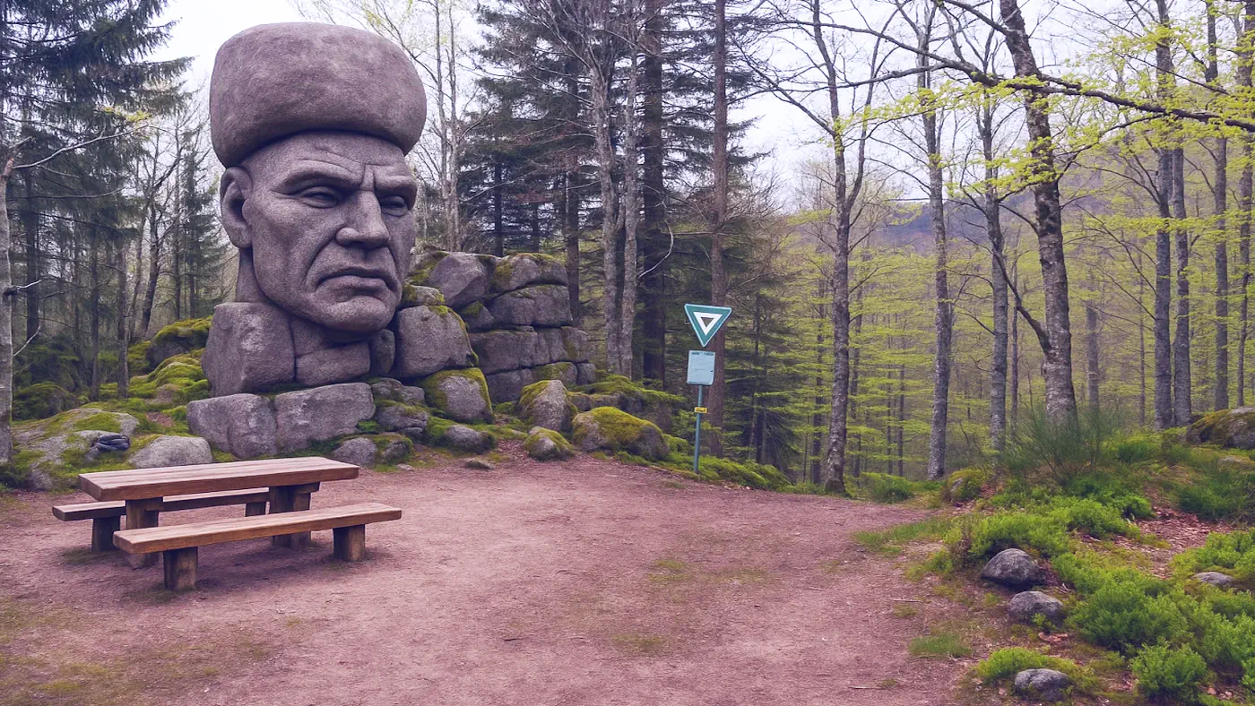 Wenn man die sieben übereinanderliegenden Felsblöcke des Siebenfelsen betrachtet, offenbart sich ein faszinierendes Schauspiel: Wer genau hinsieht - oder seine Fantasie schweifen lässt - kann darin die Umrisse eines Gesichts erkennen. Mithilfe moderner Bildbearbeitungs-KI wie Sora, die darum gebeten wird, die Konturen weiter auszuarbeiten, erscheint auf einmal das Bild eines Mannes mit Turban. Ist es eine Halluzination, wie sie jemand unter dem Einfluss bewusstseinserweiternder Substanzen erleben könnte? Oder verbirgt sich hinter dieser Erscheinung mehr? Vielleicht ist der Geist dieses geheimnisvollen Mannes in den uralten Felsen gebannt, verankert in der stillen Wildnis des Schwarzwalds - und offenbart sich nur jenen, die genau hinsehen.Zum Weiler Rohrhardsberg