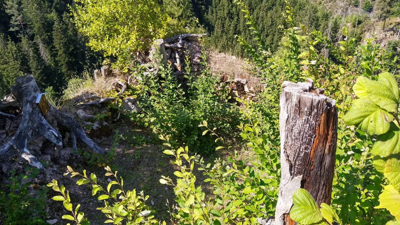 Oben angekommen betreten wir das Gelände der Burgruine. Vor uns liegen die Reste des Wohnturms, ein tiefer Graben und Mauerzüge, die von vergangener Stärke erzählen. Die Anlage stammt vermutlich aus dem frühen 13. Jahrhundert und thront auf einem markanten Felsen, der später durch Sicherungsarbeiten stabilisiert werden musste. Wir nehmen uns Zeit, die besondere Atmosphäre in Ruhe wirken zu lassen und genießen den weiten Blick ins Tal. Ein Ort, der Geschichte spürbar werden lässt und gleichzeitig ein eindrucksvolles Panorama schenkt.Weiler Tischneck