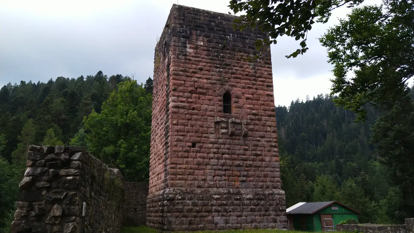 Anspruchsvolle Höhenwanderung mit mehreren Burgruinen, tief eingeschnittenen Tälern, weiten Ausblicken und sportlichem Profil im Schwarzwald. Wir starten unsere Wanderung am Busbahnhof von Schramberg und begeben uns zunächst in die Innenstadt. Entlang der Hauptstraße gehen wir an der Kirche St. Maria vorbei und folgen dem Verlauf der Schiltach in Richtung Süden. Vorbei an alten Mauern und gewachsenen Strukturen erreichen wir schließlich den Wegweiser zur Burg Schilteck. Hier überqueren wir den Fluss und beginnen den Anstieg zur Burg. Mit jedem Schritt lassen wir den Trubel der Stadt hinter uns und nähern uns den bewaldeten Höhen, die das Tal von Schramberg umschließen.Burgruine Schilteck