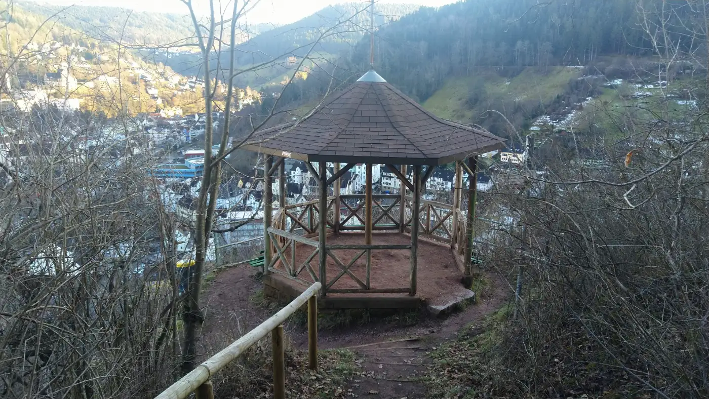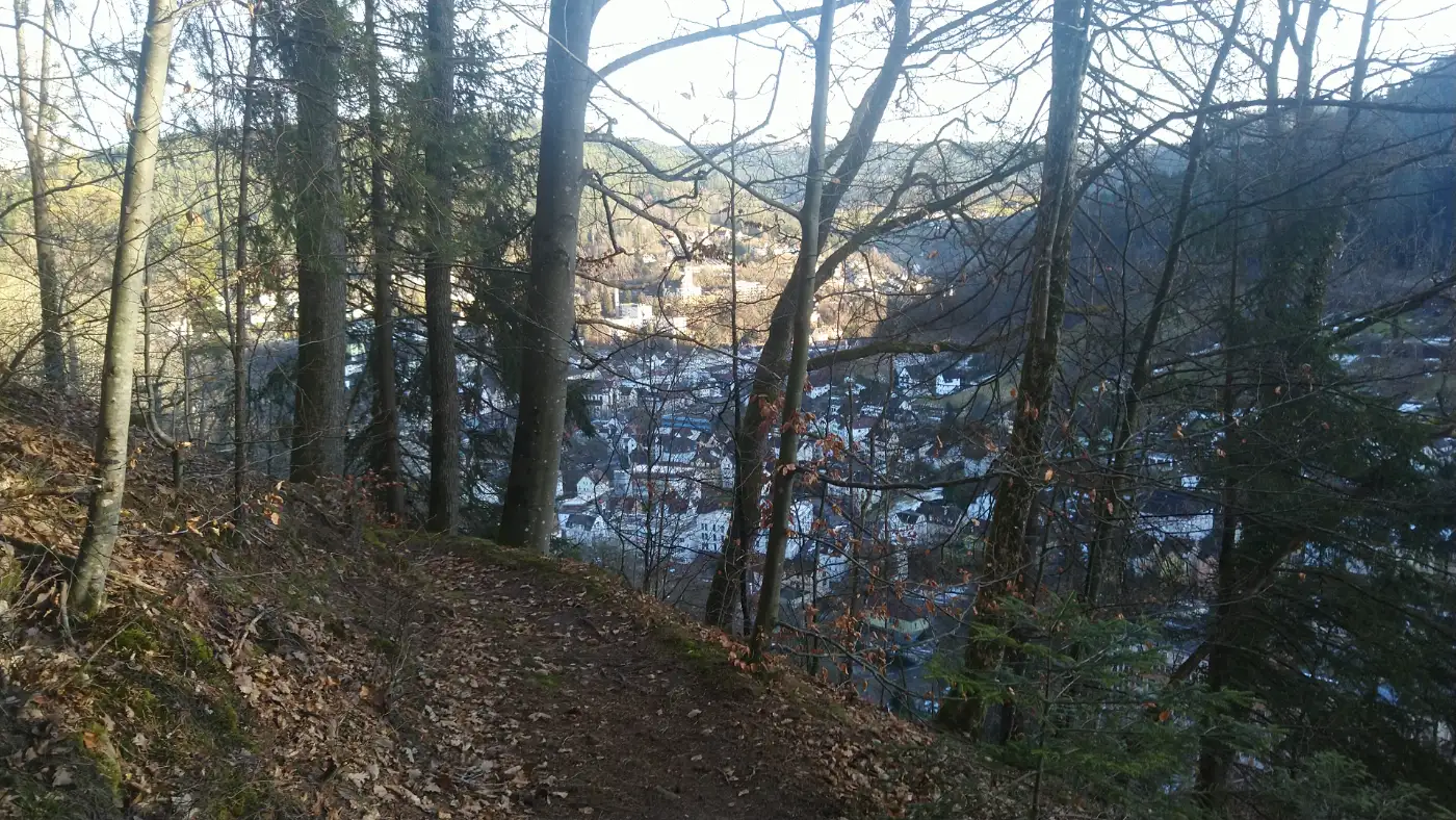 Unser Weg führt uns zunächst den Wald hinauf mit Aussicht auf die markanten Gebäude der ehemaligen Uhrenfabrik Junghans, die das Stadtbild von Schramberg bis heute prägen. Gegründet im 19. Jahrhundert, entwickelte sich das Unternehmen einst zur größten Uhrenfabrik der Welt und machte die Stadt international bekannt. Die weitläufigen Industrieanlagen erzählen noch immer von dieser Zeit. Heute werden die historischen Terrassenbauten teilweise als Firmensitz, Büroflächen und Ausstellungsorte genutzt; zudem befindet sich hier ein Uhrenmuseum, das die Geschichte der Uhrenherstellung dokumentiert.Entlang des Lauterbachs