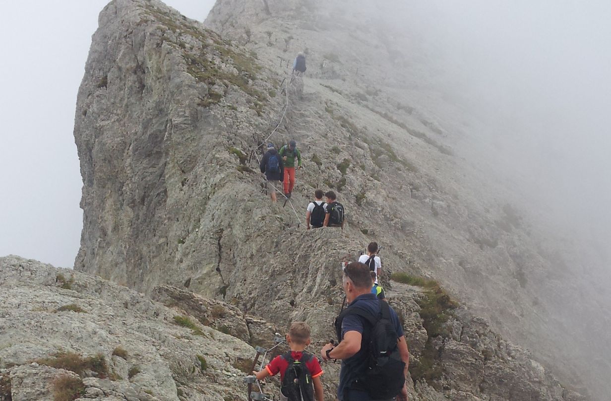 Der Weg wird ab hier alpiner. Wir steigen über Geröllfelder und schmale Pfade, passieren den Girensattel und nähern uns der letzten Herausforderung: der legendären Himmelsleiter. Dieser Abschnitt ist ein gut gesicherter Klettersteig (T3-T4), der mit Stahlseilen, Trittstiften und Leitern ausgestattet ist. Zwar technisch nicht extrem schwer, aber steil, exponiert und physisch fordernd - hier ist absolute Konzentration gefragt.