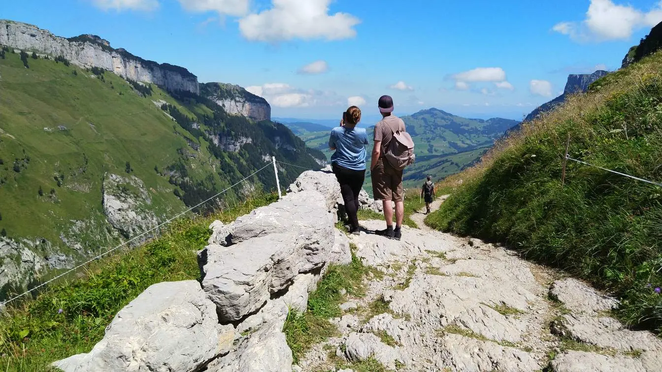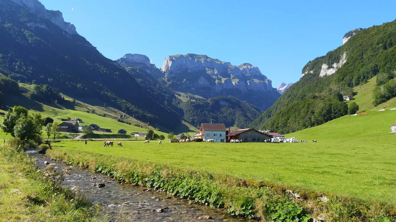 Wir beginnen unsere Wanderung im kleinen, beschaulichen Ort Schwende (937 m ü. M.), der gut mit der Appenzeller Bahn erreichbar ist. Zu Beginn steigt der Wanderweg sanft an und führt durch blumige Almwiesen, in denen der Schwendibach plätschert. Immer wieder passieren wir verstreut liegende Bergbauernhöfe mit typischer, traditioneller Bauweise. Der Blick öffnet sich weit über die sanften Hügel bis hin zu den schroffen Zacken des Alpsteinmassivs - ein eindrucksvoller Vorgeschmack auf das bevorstehende alpine Abenteuer.Autofreies Dorf Meglisalp