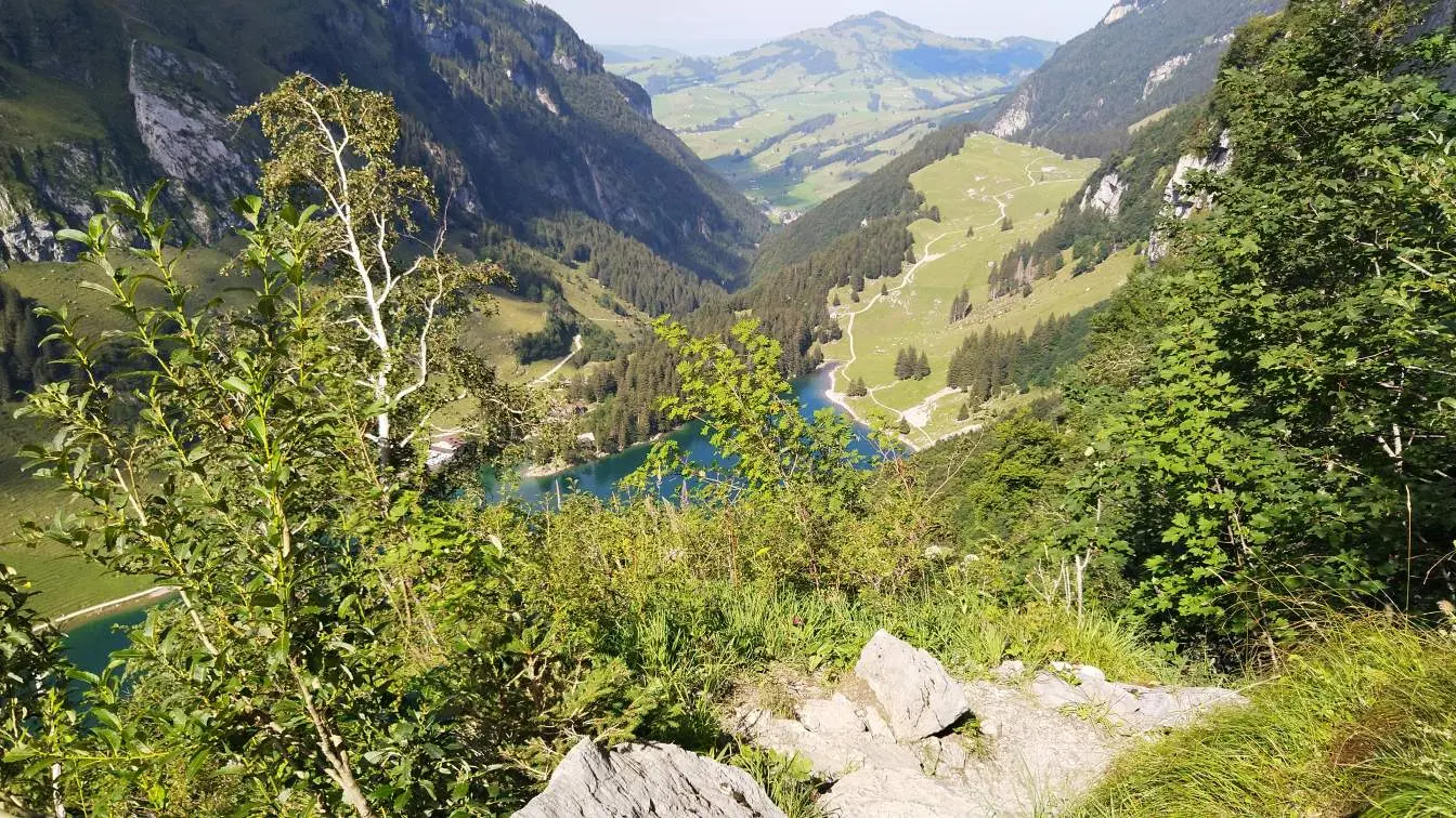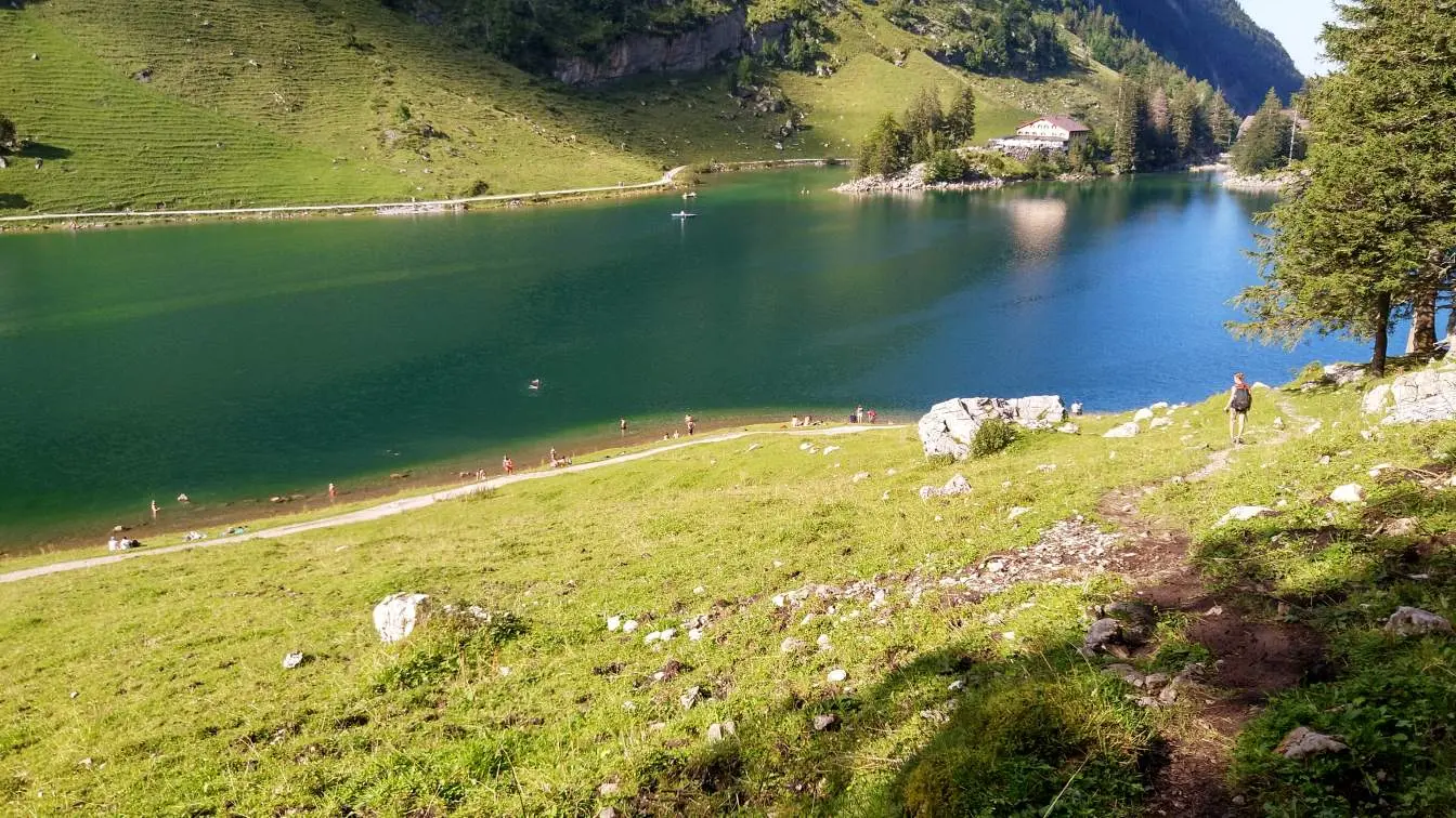 Der Rückweg verläuft über die Meglisalp hinab zum malerischen Seealpsee - einem der meistfotografierten Orte im Appenzellerland und ein wahres Postkartenmotiv. Eingebettet zwischen schroffen Wänden, spiegelt der türkisfarbene See die Gipfel des Alpsteins im glatten Wasser. Ein Badeplatz lädt zum kurzen Eintauchen ein, oder man genießt einfach die Ruhe bei einer Pause am Ufer.