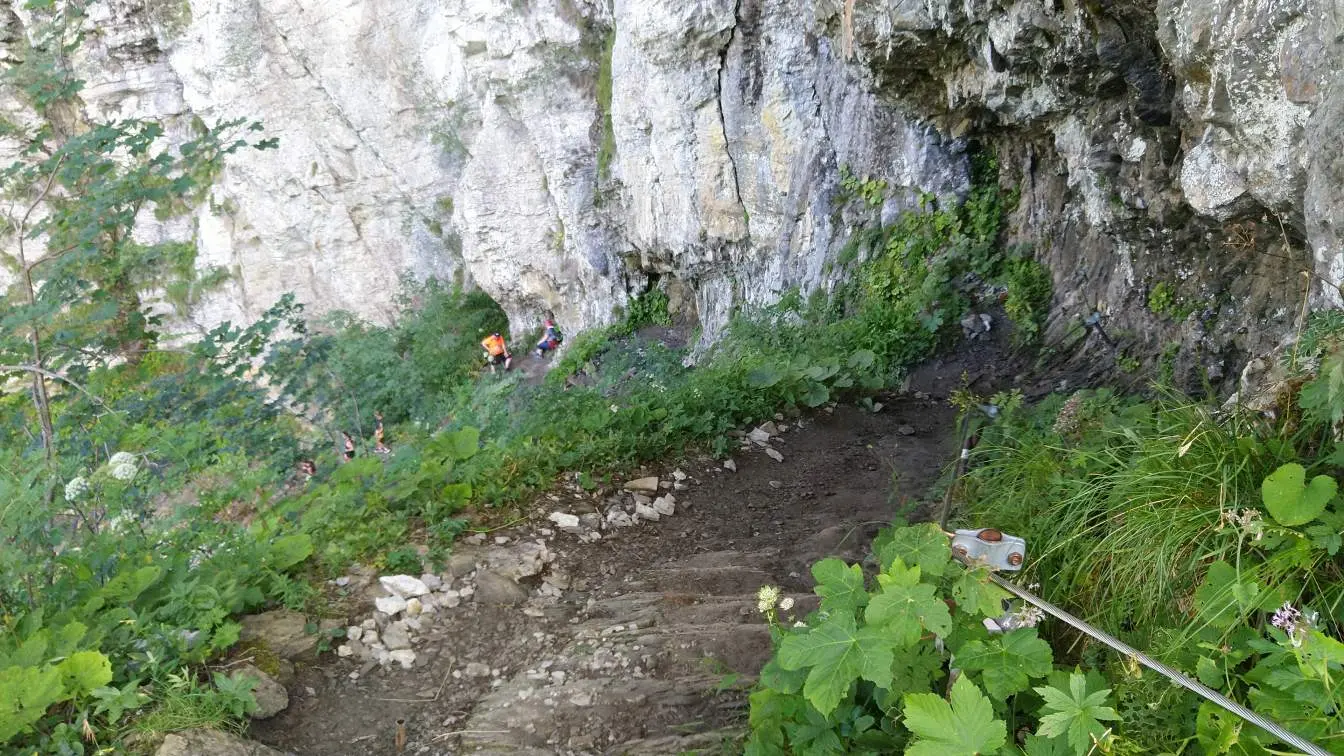 Ab der Meglisalp startet der herausforderndere Abschnitt der Tour - hier beginnt der eigentliche Aufstieg ins alpine Gelände. Der schmale, gut markierte Bergweg schlängelt sich durch Geröllfelder, über Bänder und felsige Abschnitte steil hinauf. Trittsicherheit und eine gute Kondition sind hier unerlässlich, insbesondere bei Nässe. Nach rund 2 Stunden erreichen wir den Rotsteinpass (2120 m ü. M.). Hier steht die urige Rotsteinpasshütte, die mit einer warmen Suppe, frischem Apfelschorle oder einem kühlen Bier lockt - mit direktem Blick auf die Säntis-Südwand, eine der markantesten Felswände der Schweiz. Der Blick schweift bis zu den Glarner Alpen, ins Rheintal und an klaren Tagen sogar bis zum Bodensee.Rückweg zum Seealpsee