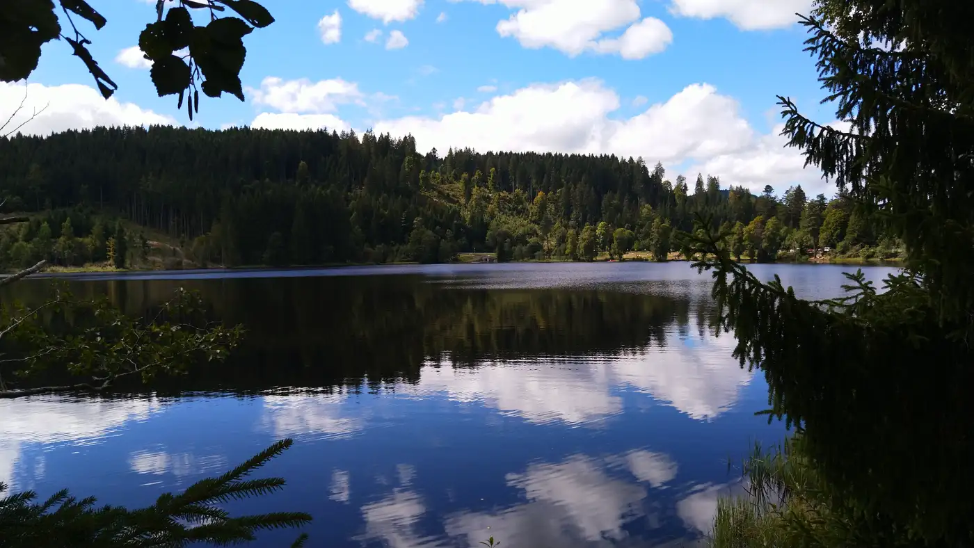 Vom Ort Bärental aus beginnen wir den Abstieg in Richtung Titisee, der als einer der bekanntesten Seen des Schwarzwalds gilt. Mit jedem Schritt nähern wir uns einer lebendigeren Umgebung: Boote gleiten über die Wasserfläche, Spaziergänger genießen die Promenade und die Cafés laden zum Verweilen ein. Der See eignet sich ebenfalls hervorragend zum Schwimmen und Baden, und direkt am Ufer befindet sich ein Campingplatz mit Einkehrmöglichkeiten, der eine willkommene Rast bietet. Der Kontrast zu den stilleren Gewässern zuvor macht den Reiz dieser Etappe besonders deutlich.Der Ort Titisee