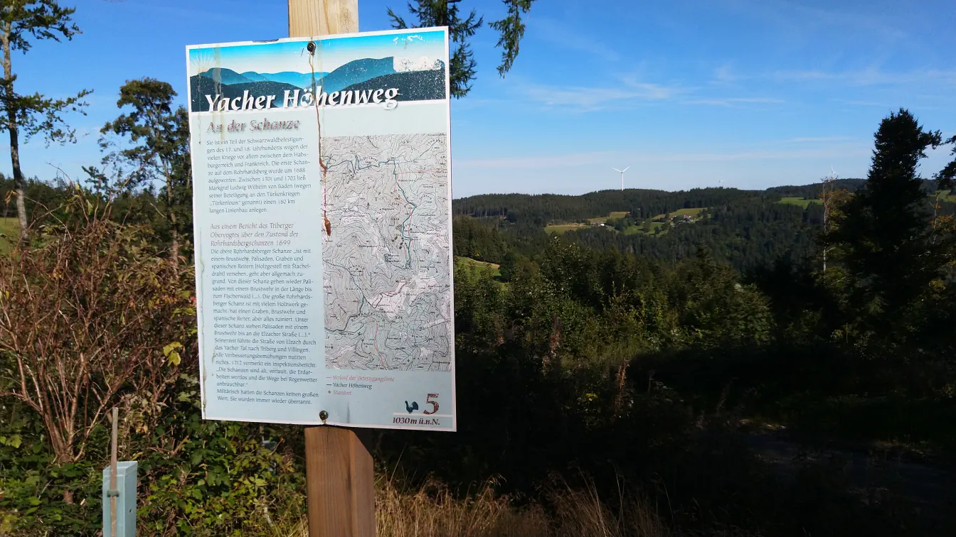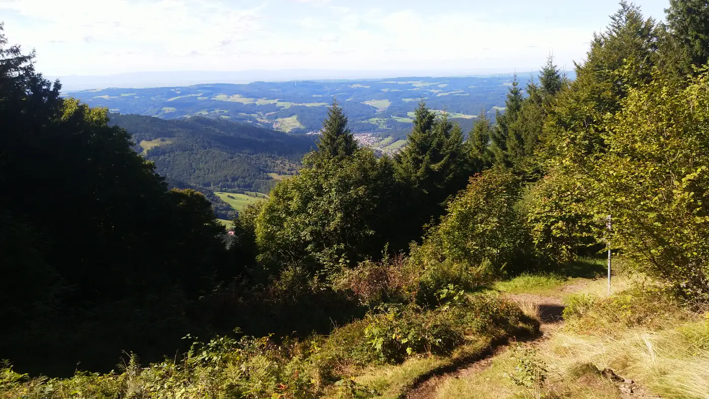 Nach der Schlucht beginnt der eigentliche Anstieg. Wir steigen stetig bergauf, zunächst durch dichte Wälder, die uns Schatten spenden. Dann öffnet sich der Weg und wir blicken über sanfte Hügel zurück ins Tal. Die Steigung fordert uns, doch sie ist gleichmäßig und gut zu bewältigen. Immer wieder kreuzen wir kleine Waldpfade, bis sich der Blick auf den nahenden Gipfel richtet. Mit jedem Höhenmeter spüren wir die klare Bergluft intensiver und freuen uns auf das bevorstehende Panorama. Der Rohrhardsberg gilt nicht umsonst als einer der Berge im Schwarzwald, dessen Aussichtspanoramen nahezu alles zu bieten haben - vom Rheintal über die Schwäbische Alb bis hin zu fernen Gipfeln.Rohrhardsberg - Blick ins Rheintal